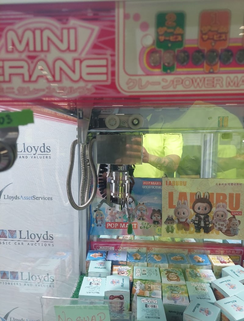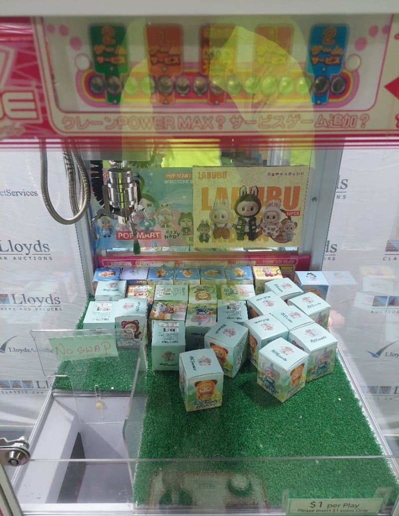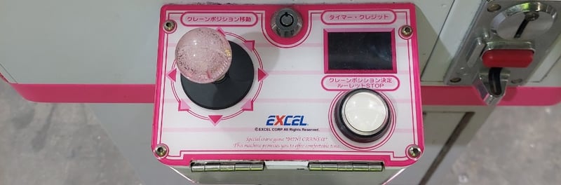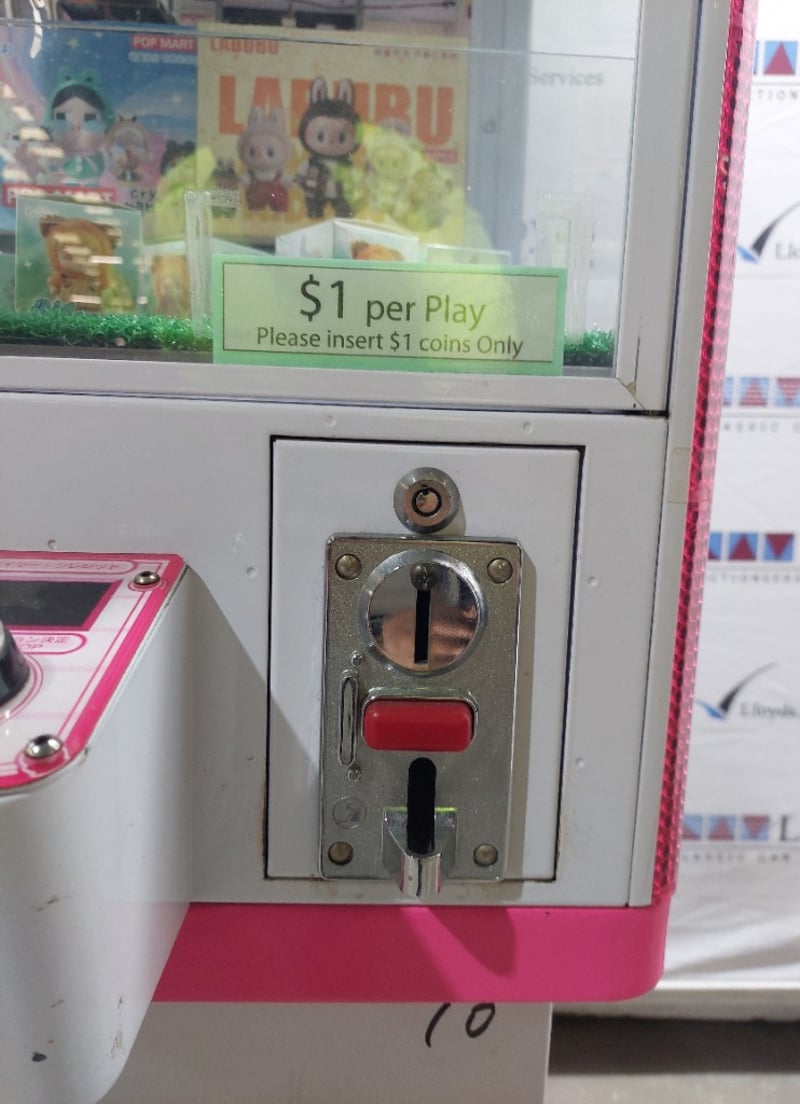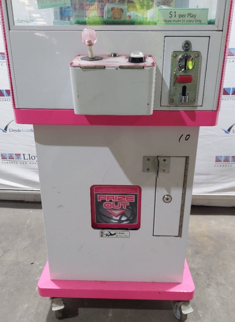Arcade Claw Machine - Excel 'Mini Crane', single player, pink theme, joystick controls, coin operated, mobile.S/N: 2861172Dims: 1600mm x 700mm x 700mmNote: Item is untested, with signs of wear, keys included.