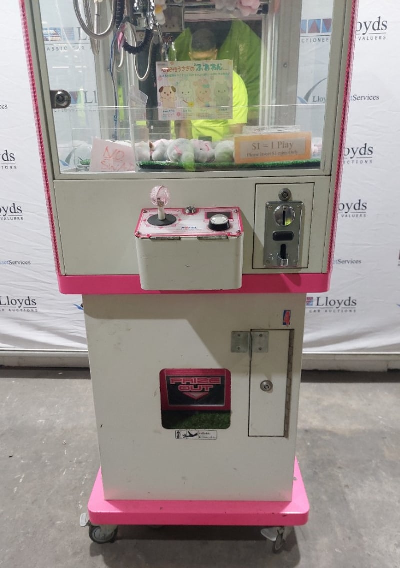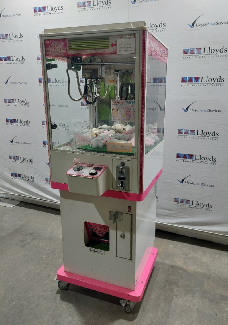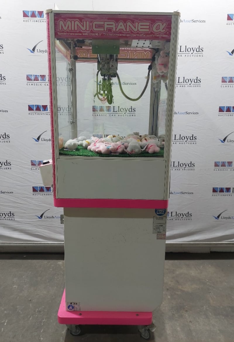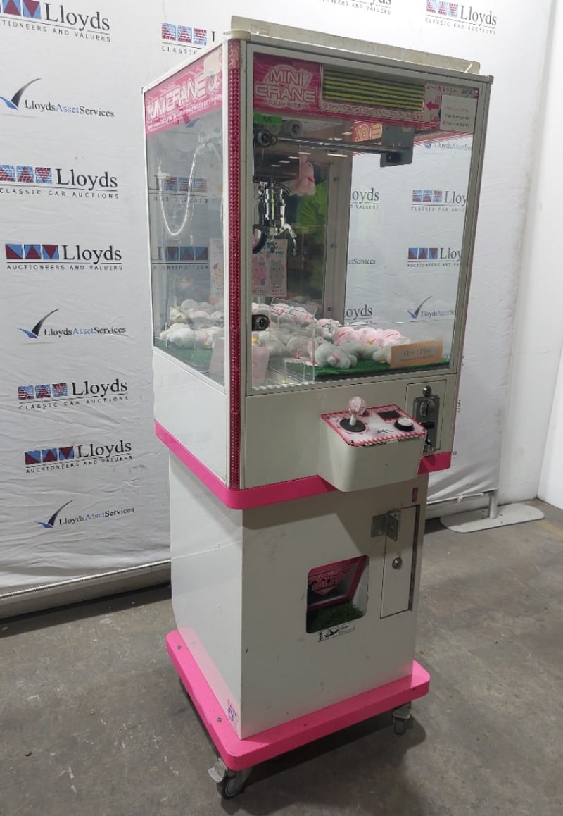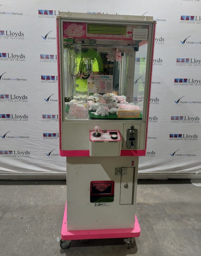 Arcade Claw Machine - Excel 'Mini Crane', single player, pink theme, joystick controls, coin operated, mobile.S/N: 2861130Dims: 1600mm x 700mm x 700mmNote: Item is untested, with signs of wear, keys included.