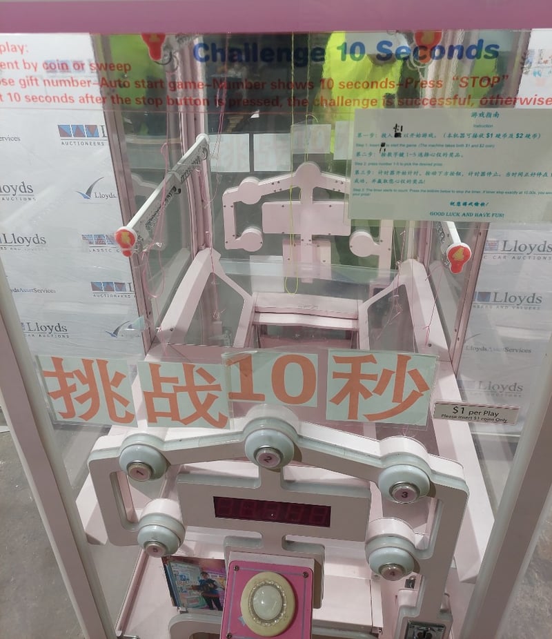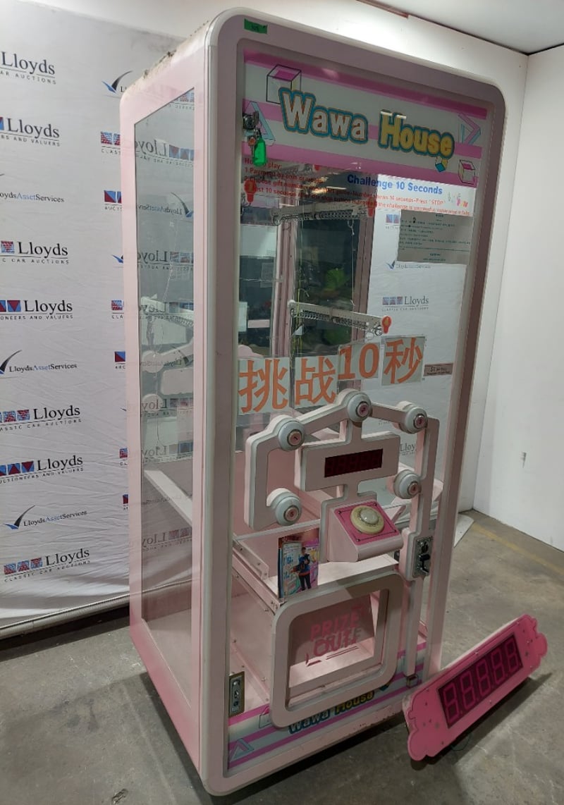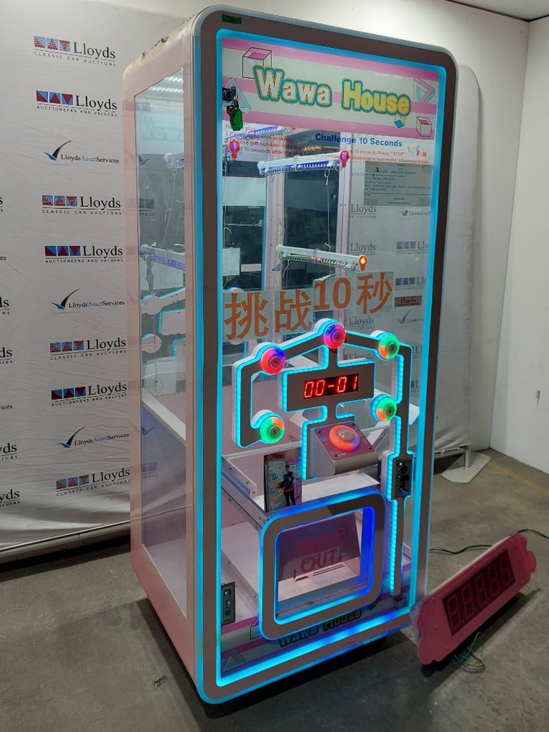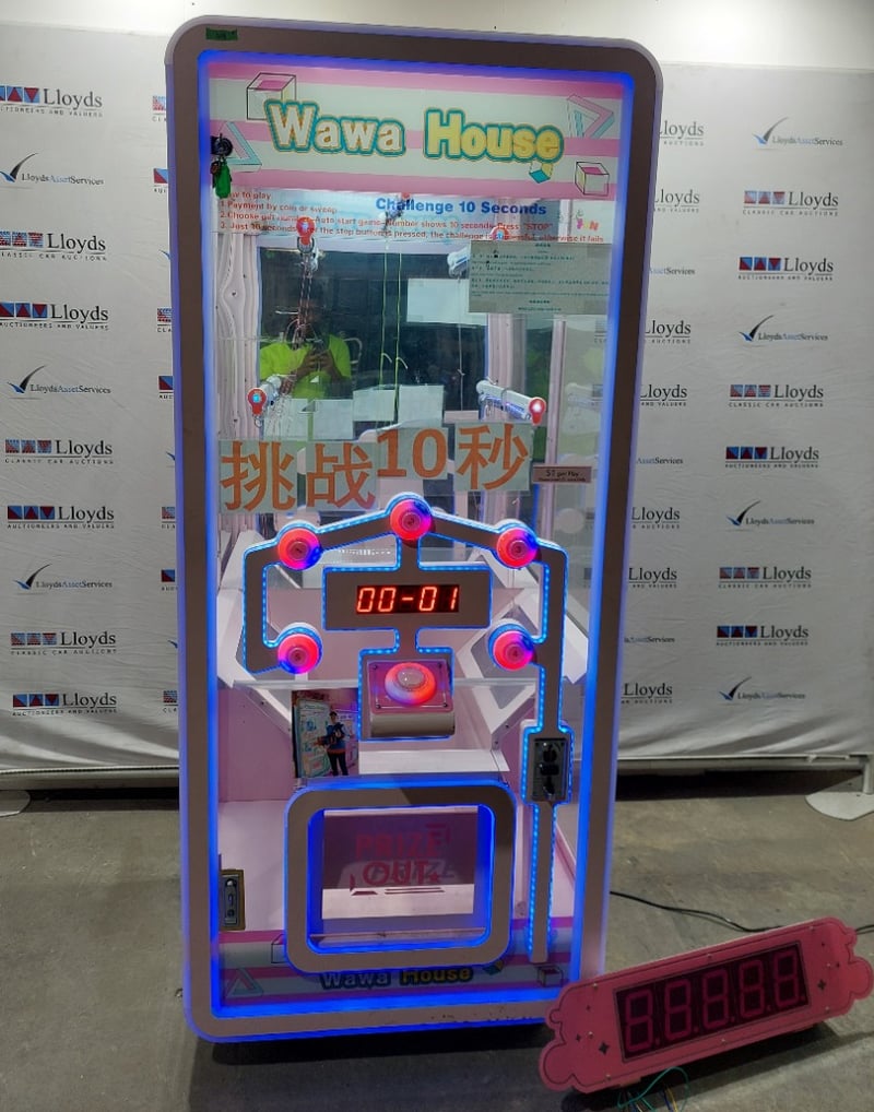 Reaction/skill-stop Arcade Machine - Wawa House 'Challenge 10 Seconds', single player, button controls, 5-prize choice, coin operated, mobile, Dims: 2000mm x 800mm x 850mmNote: Item is untested, with signs of wear, keys included.