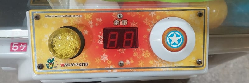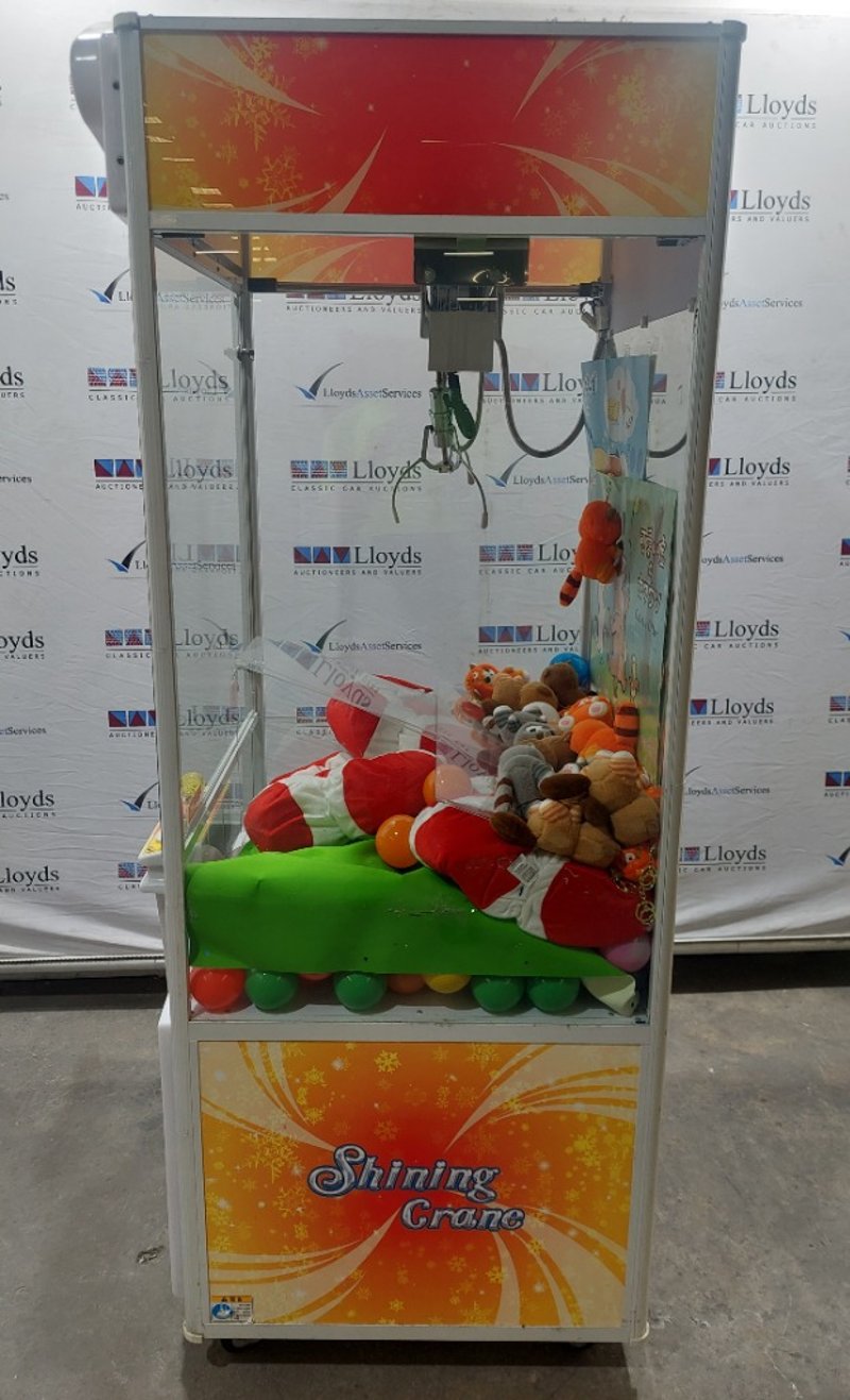 Arcade Claw Machine - Wahlap Shining Crane, single player, joystick controls, coin-operated, mobile.S/N: WLA000048619Dims: 2000mm x 800mm x 850mmDOM: 2015Note: Item is untested, with signs of wear, keys included, power cable not included.