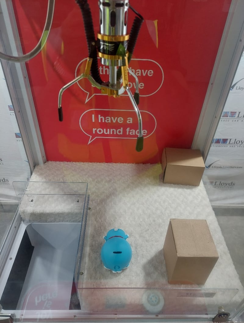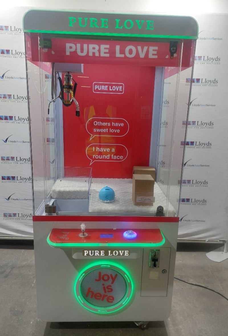 Arcade Claw Machine - Meiyi 'Pure Love', single player, joystick controls, coin operated, mobile.
