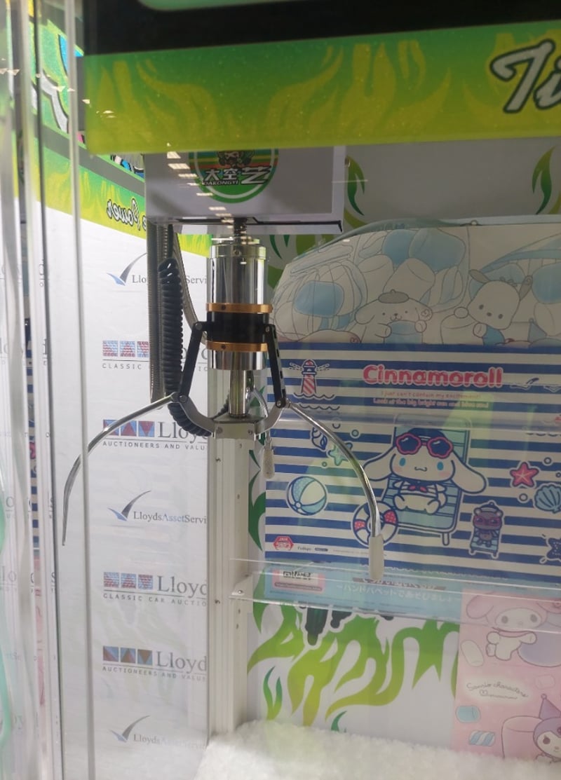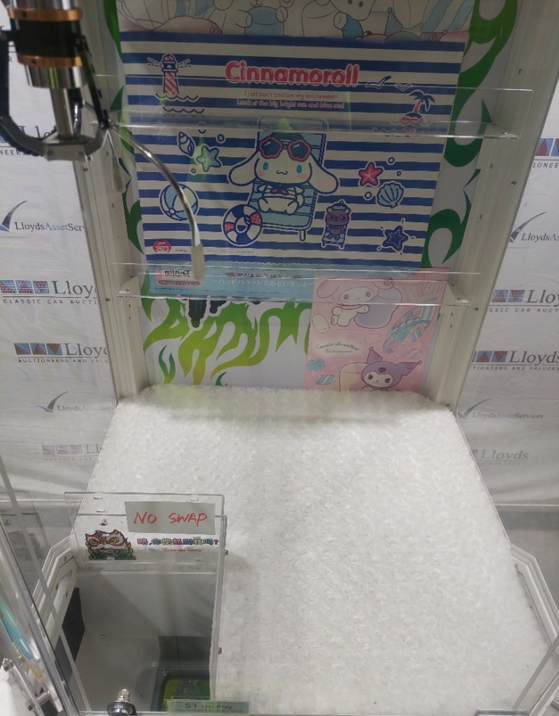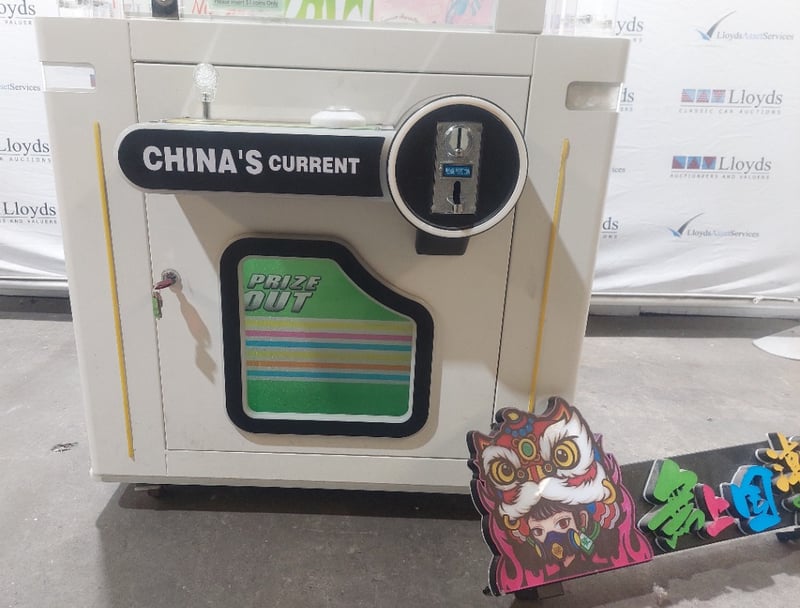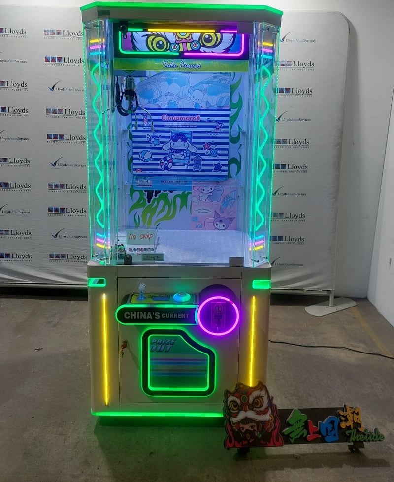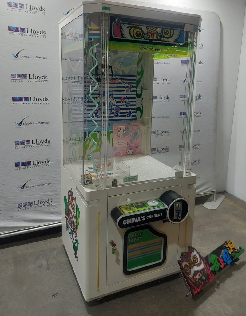 Arcade Claw Machine - The Tide 'Tide Power', single player, green theme, joystick controls, coin operated, mobile.Dims: 1900mm x 800mm x 850mmNote: Item is untested, signs of wear, keys included.