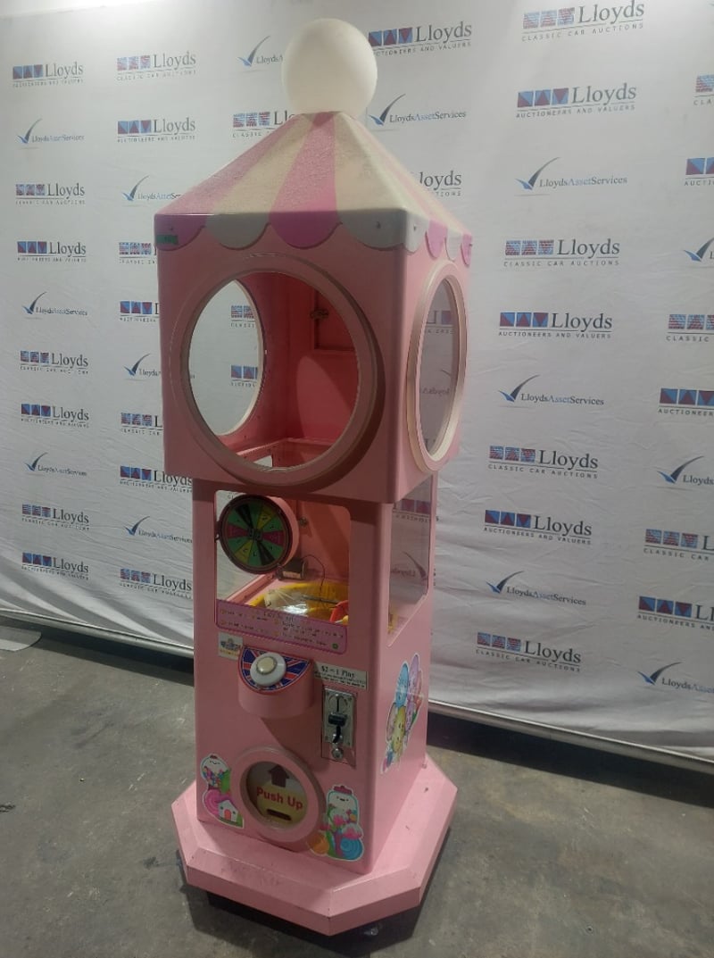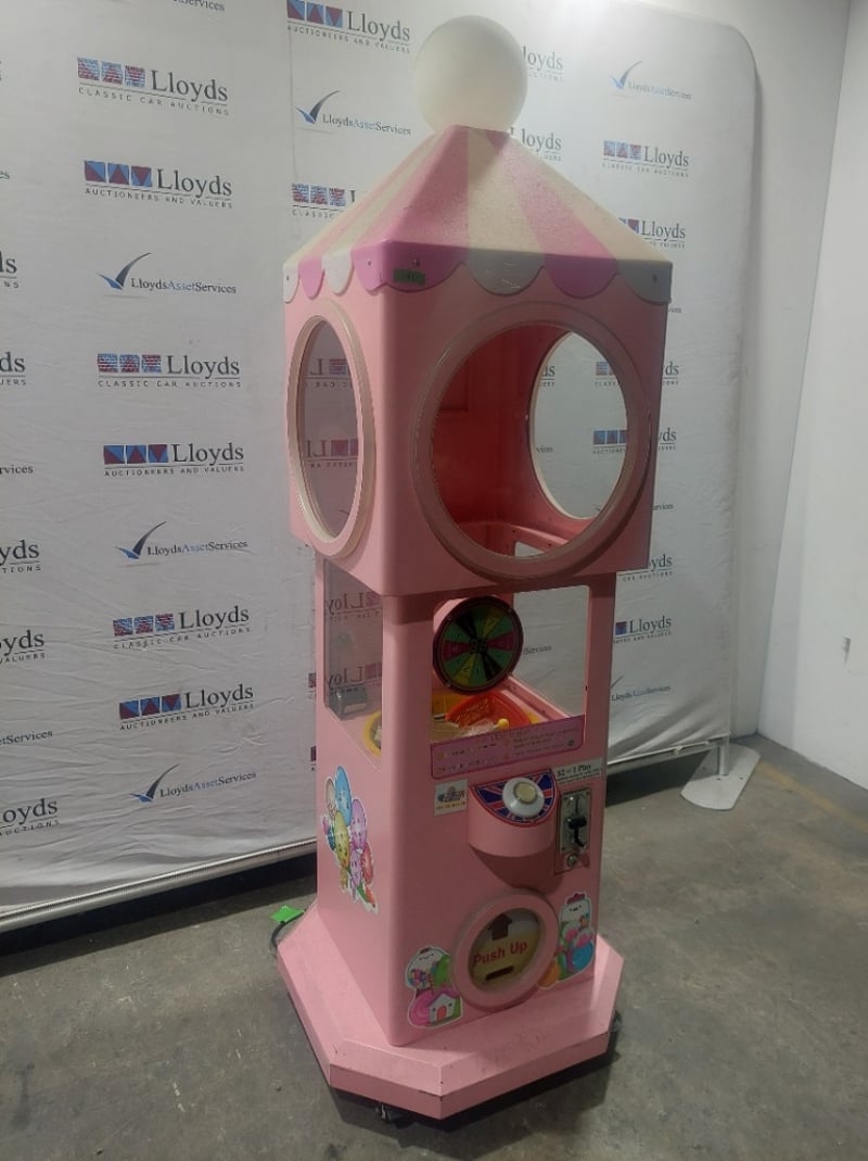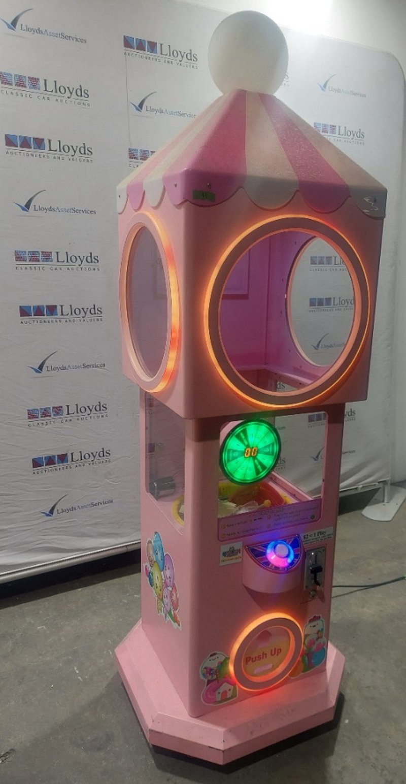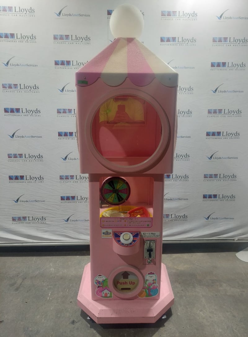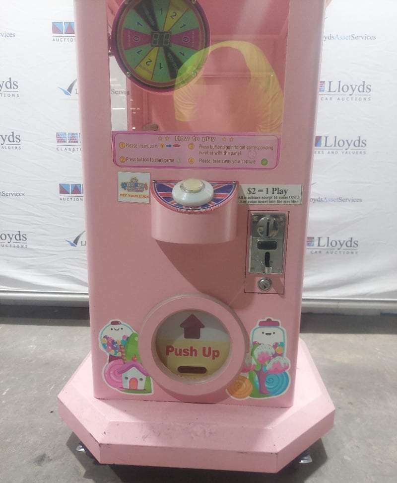 Capsule Toy Vending Machine - Maidoudou XJD-1104, single player, blue theme, button controls, coin operated, mobile.Dims: 1900mm x 650mm x 650mmNote: Item is untested, with signs of wear, keys included.