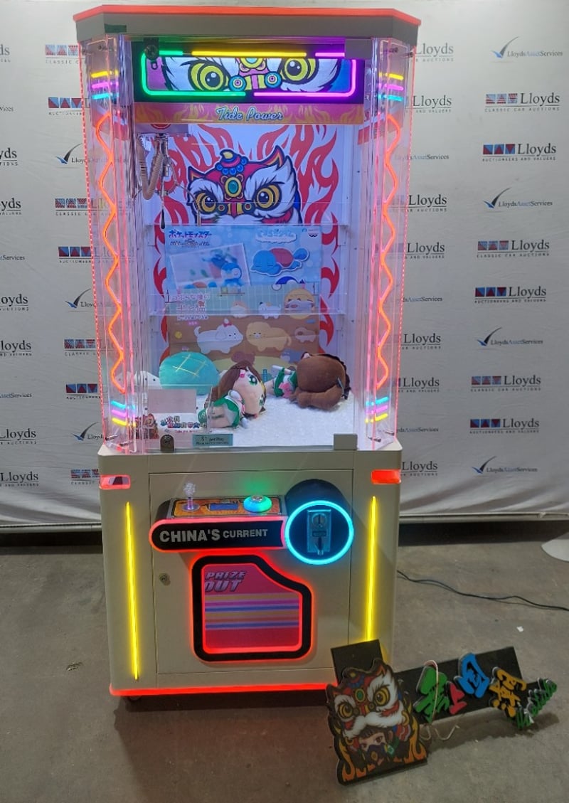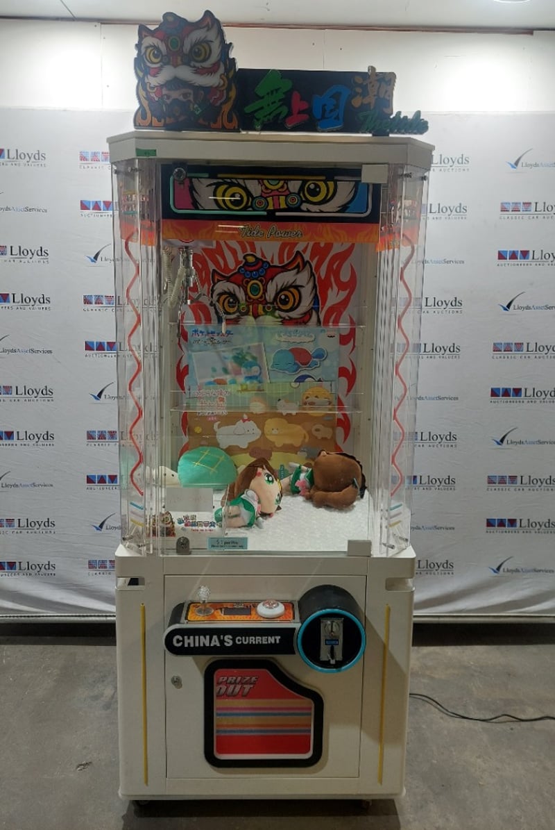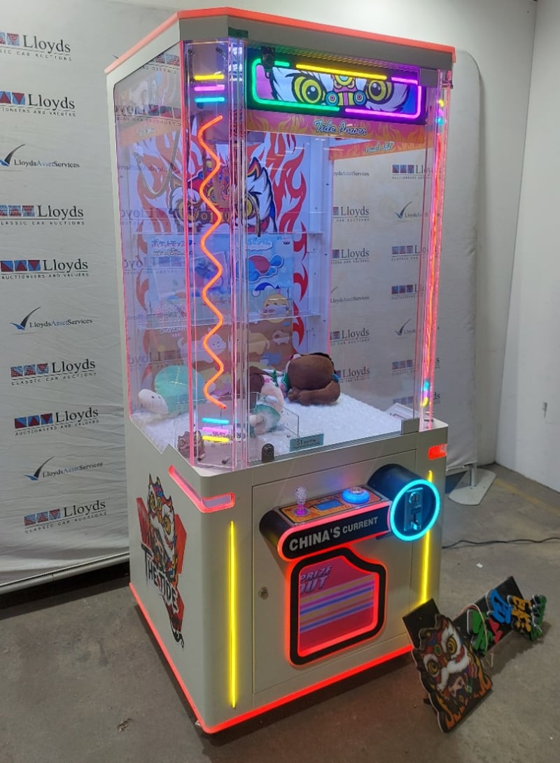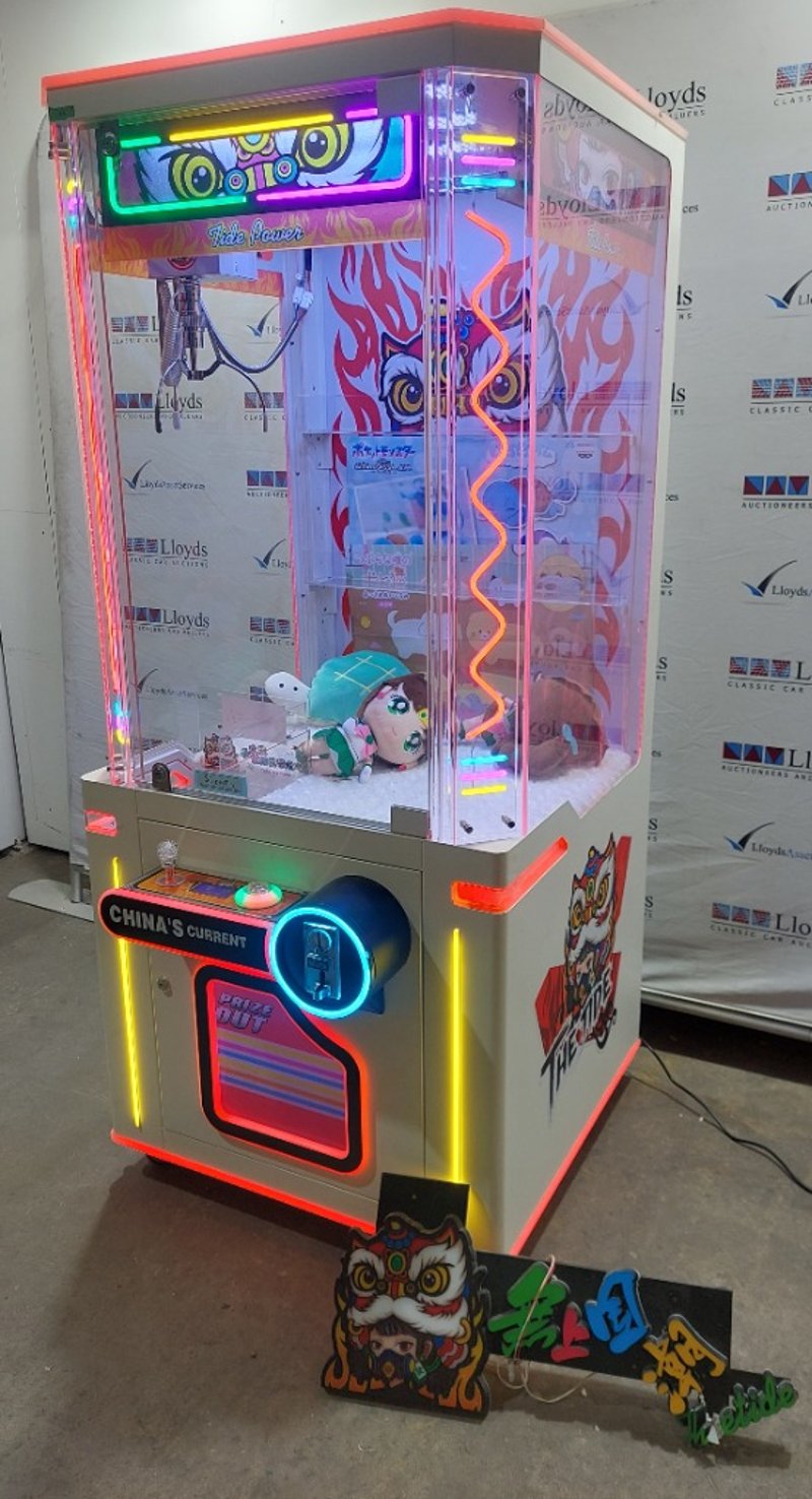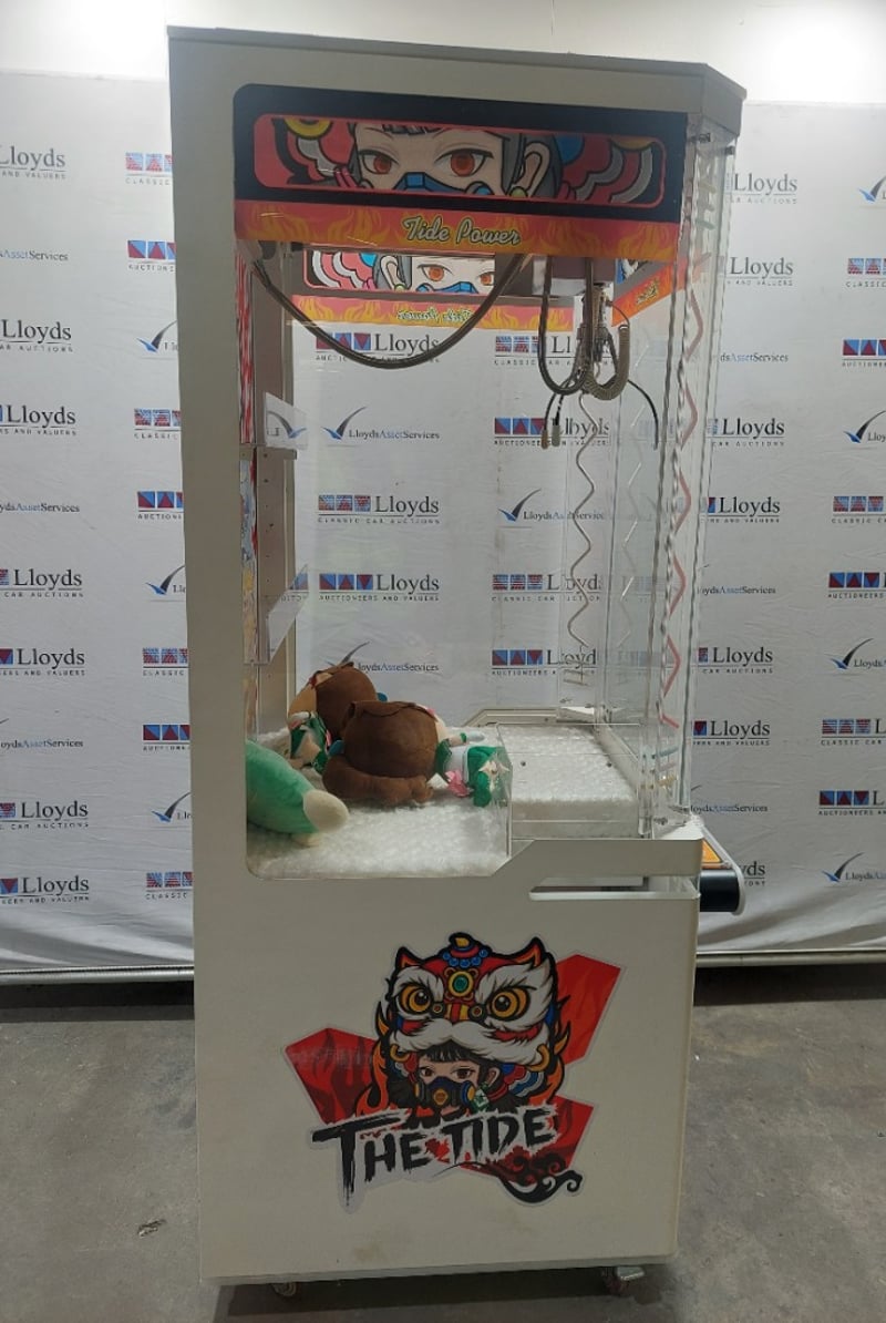 Arcade Claw Machine - The Tide 'Tide Power', single player, orange theme, joystick controls, coin operated, mobile.
