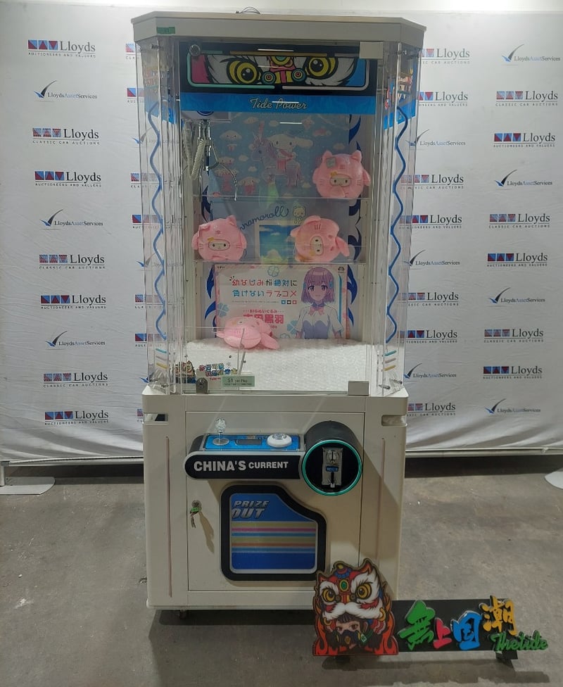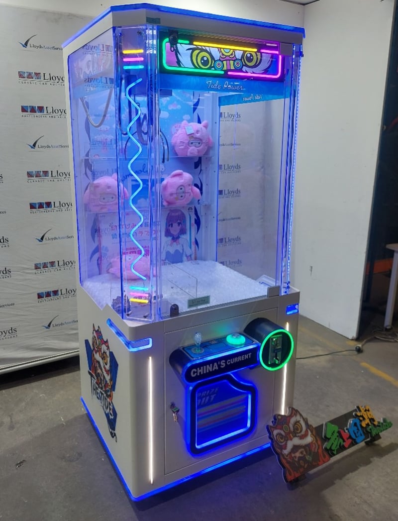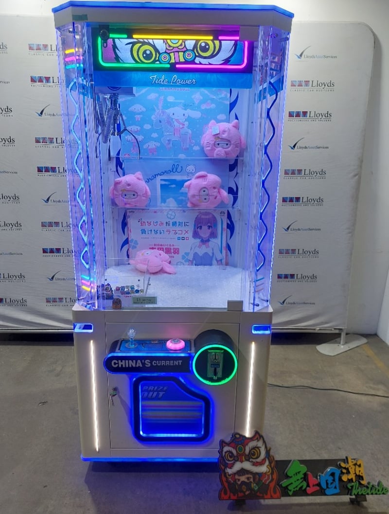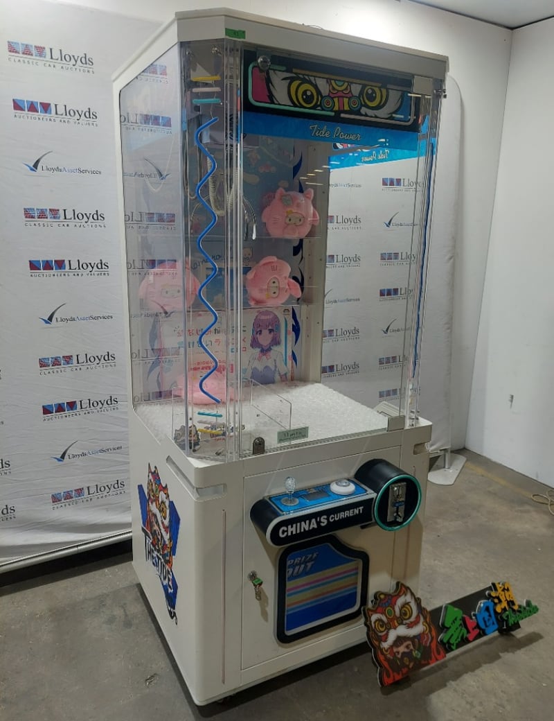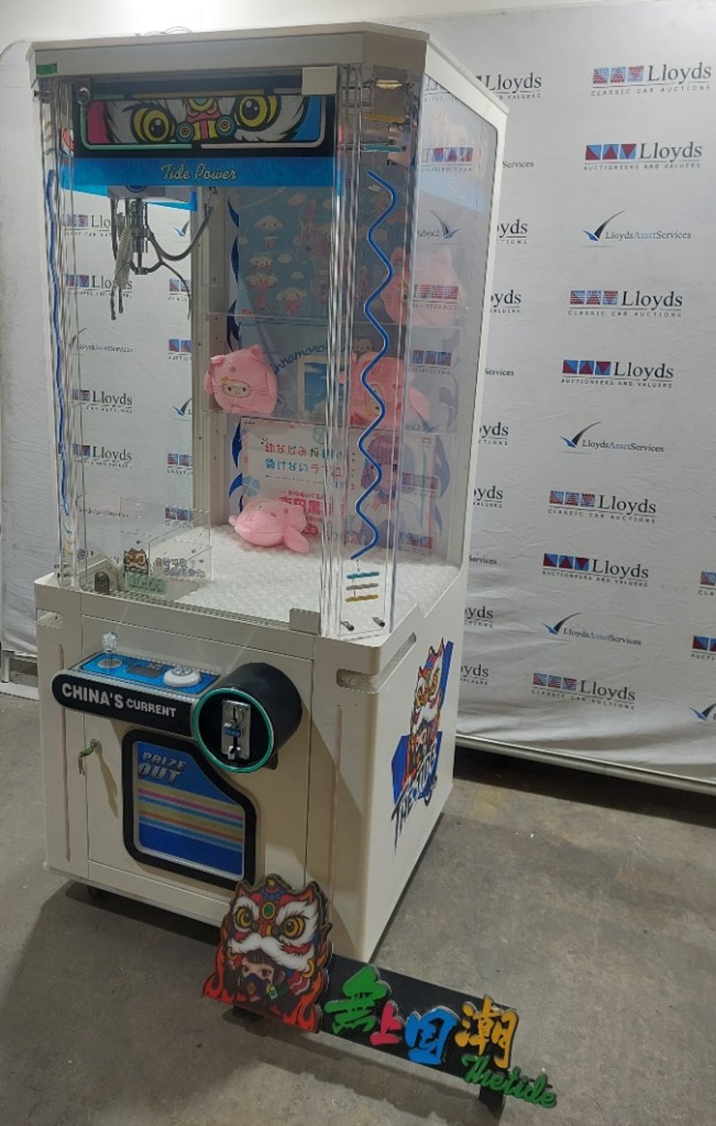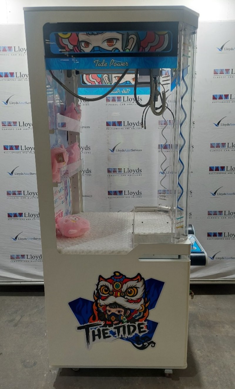 Arcade Claw Machine - The Tide 'Tide Power', single player, orange theme, joystick controls, coin operated, mobile.
