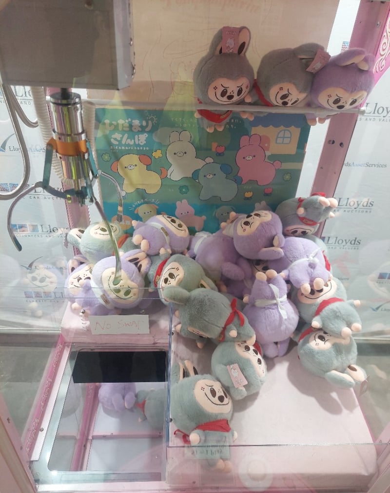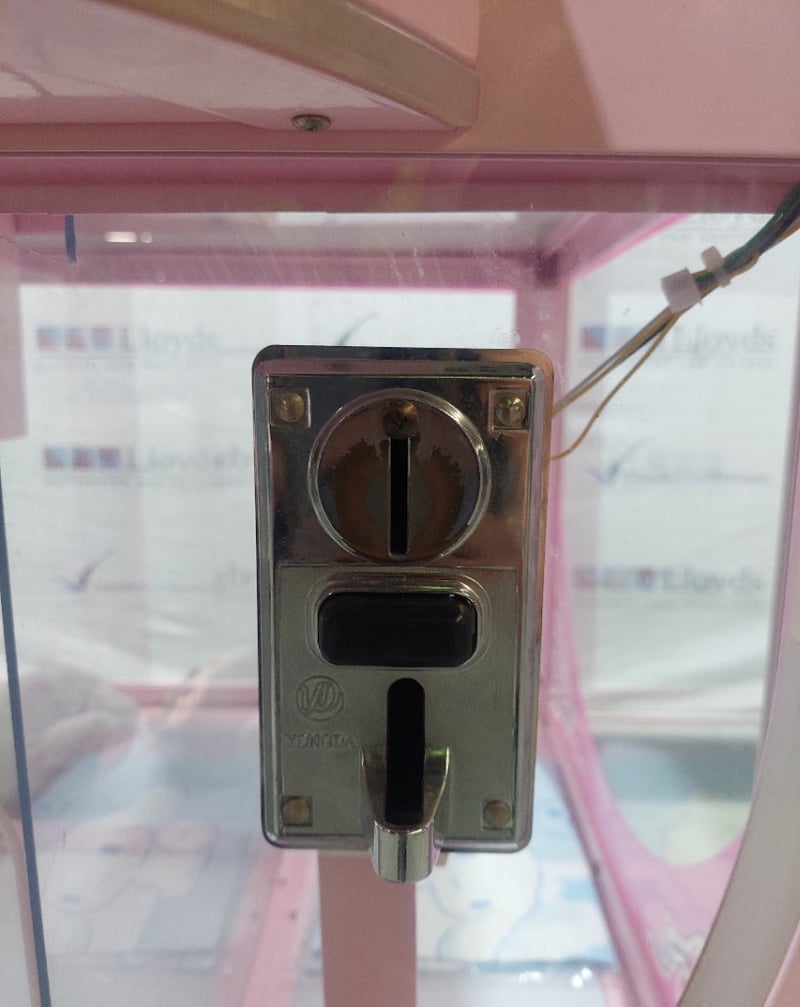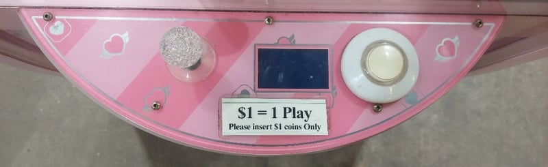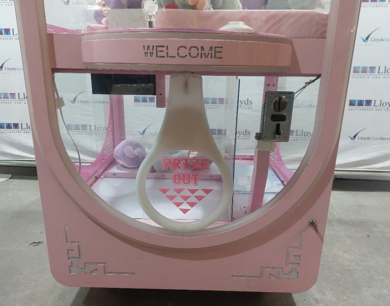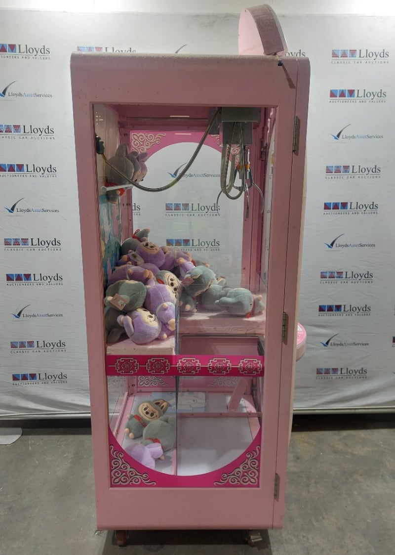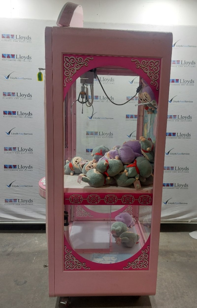 Arcade Claw Machine - Blee 'Doll Park', single player, pink theme, joystick controls, coin operated, mobile.