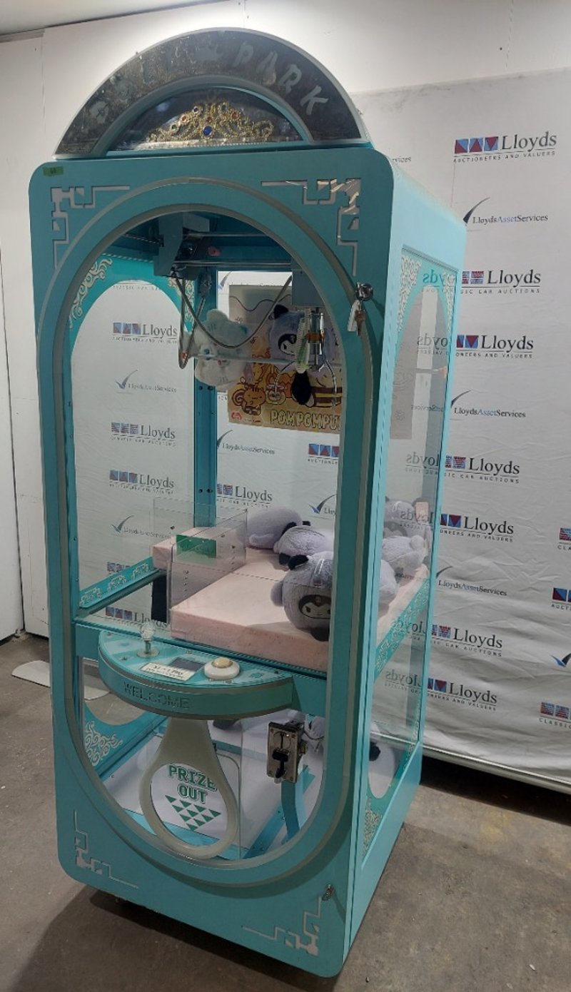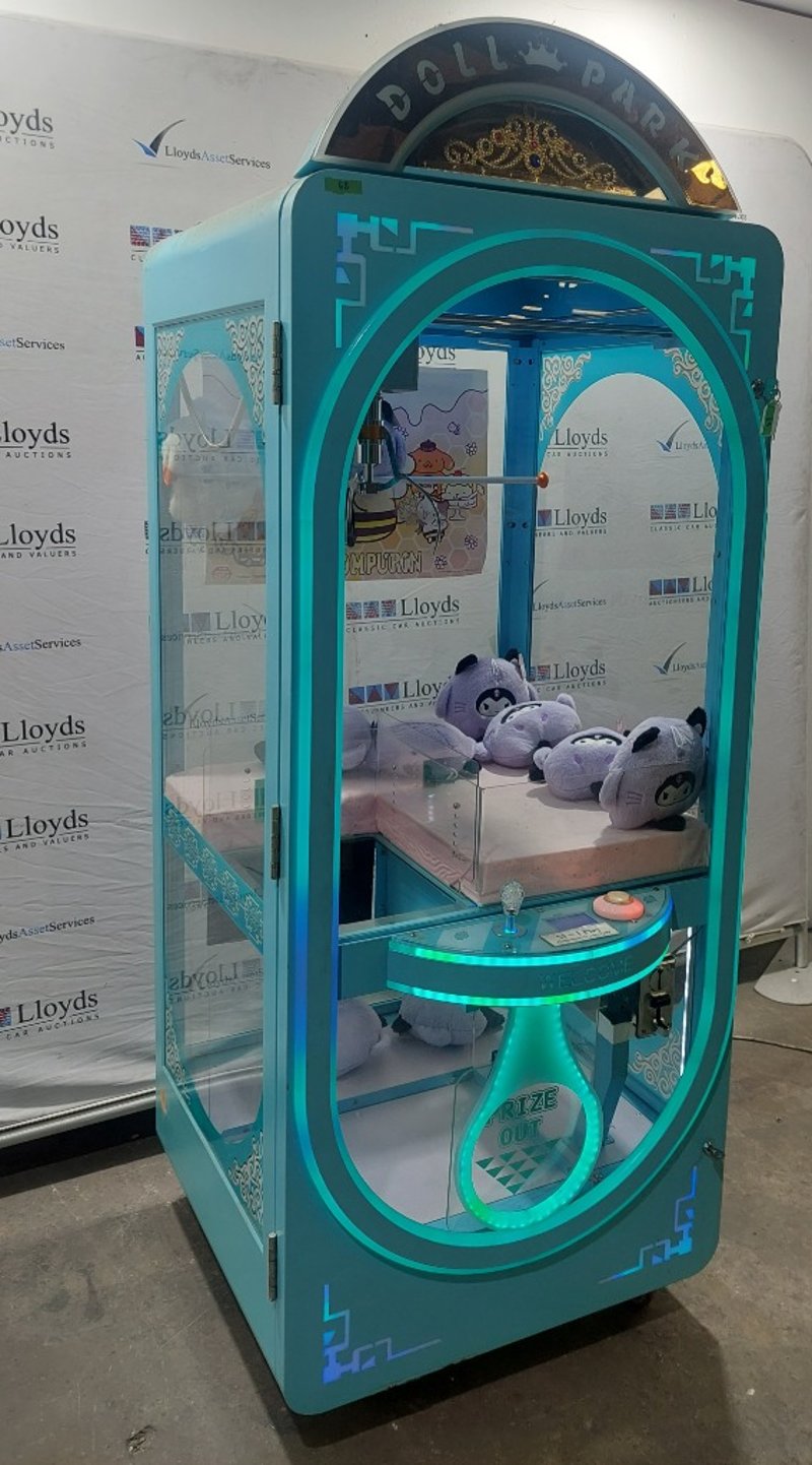 Arcade Claw Machine - Blee 'Doll Park', single player, blue theme, joystick controls, coin operated, mobile.