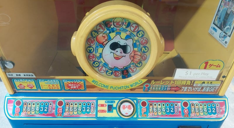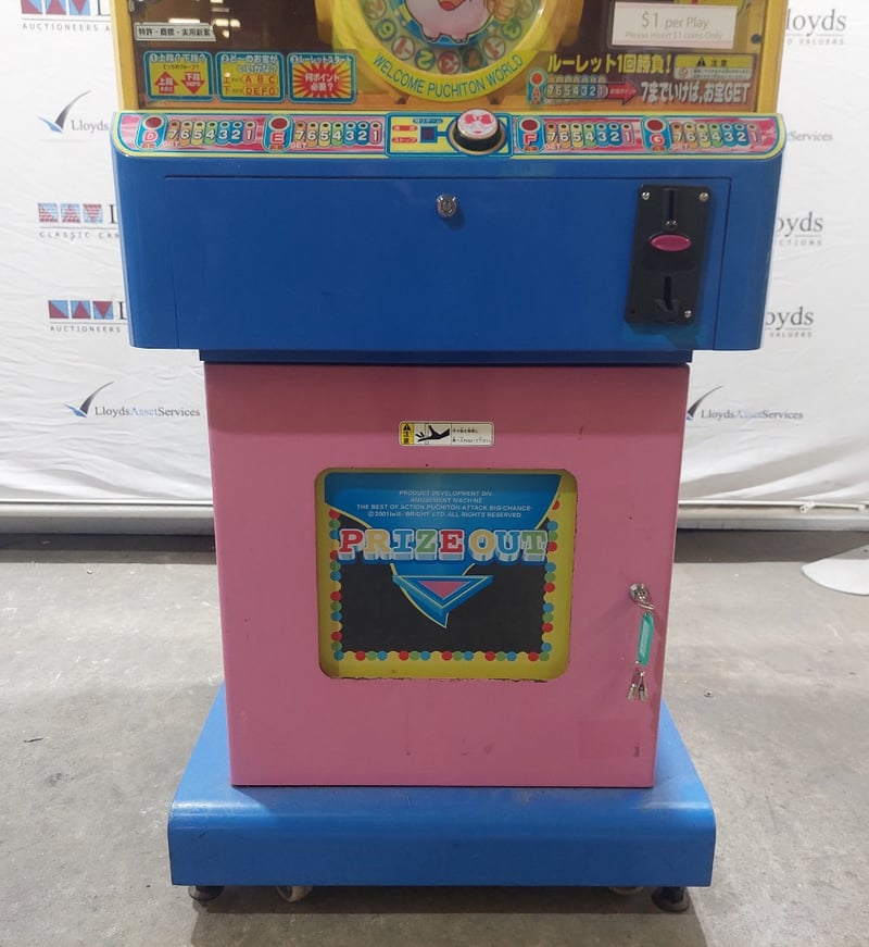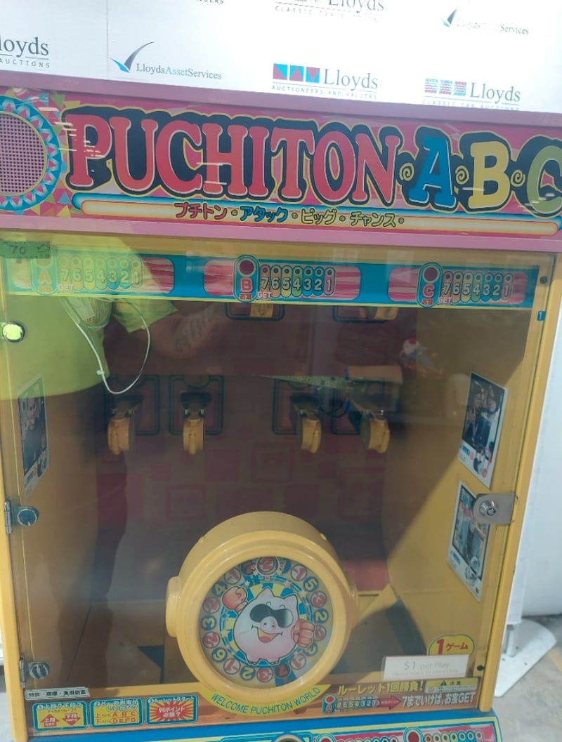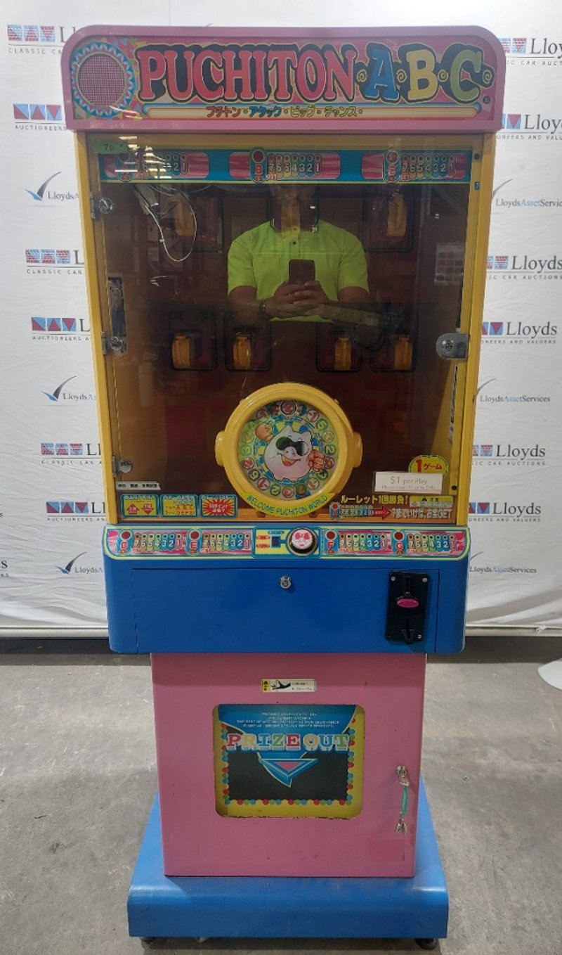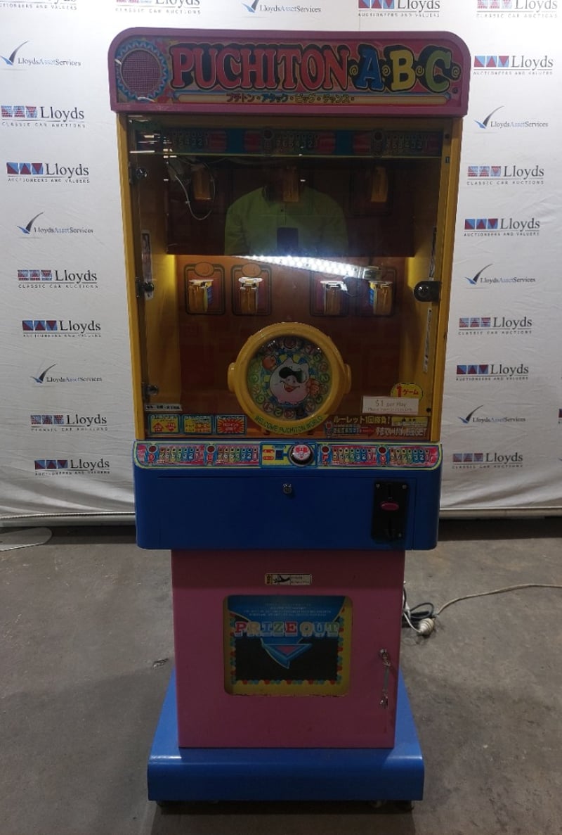 Arcade Claw Machine - Excel 'Puchiton ABC', single player, button controls, coin operated, mobile.