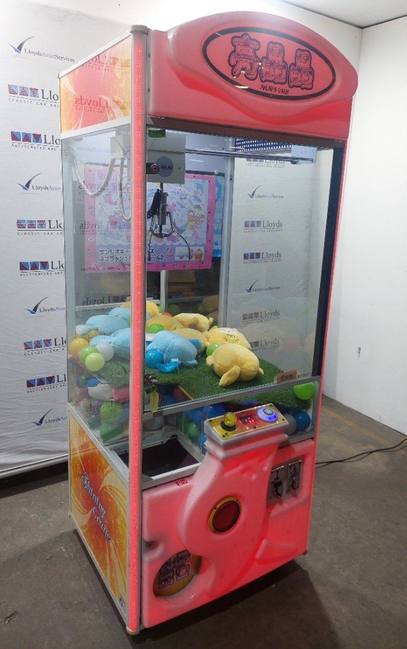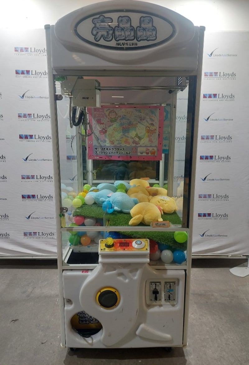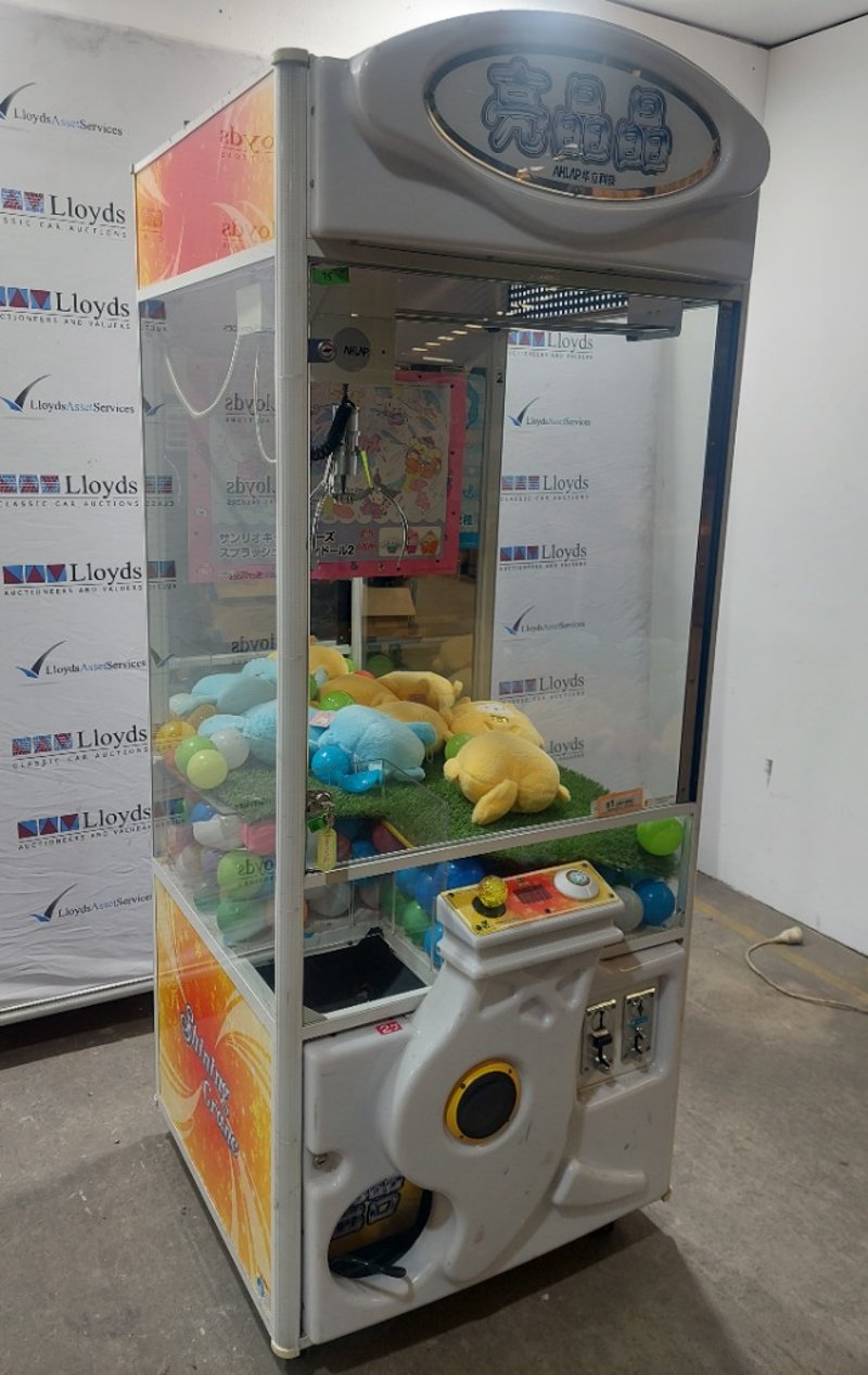 Arcade Claw Machine - Wahlap Shining Crane, single player, joystick controls, coin operated, mobile.Dims: 2000mm x 800mm x 850mmDOM: 2015Note: item is untested, with signs of wear, keys included.