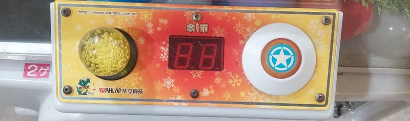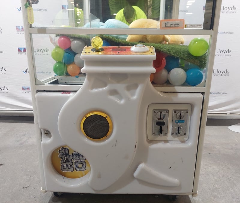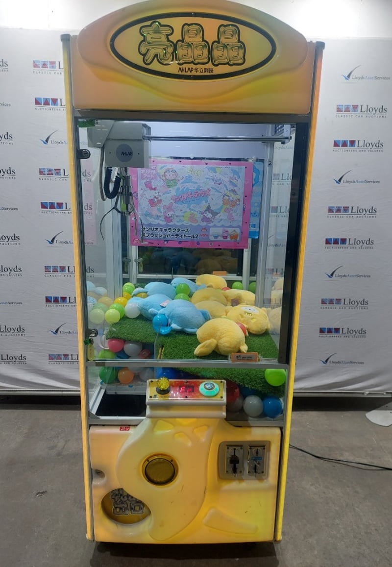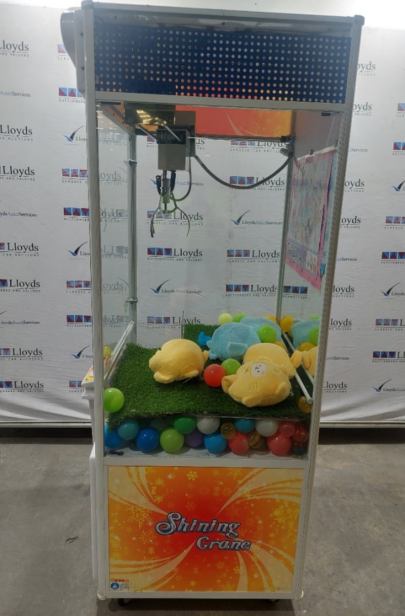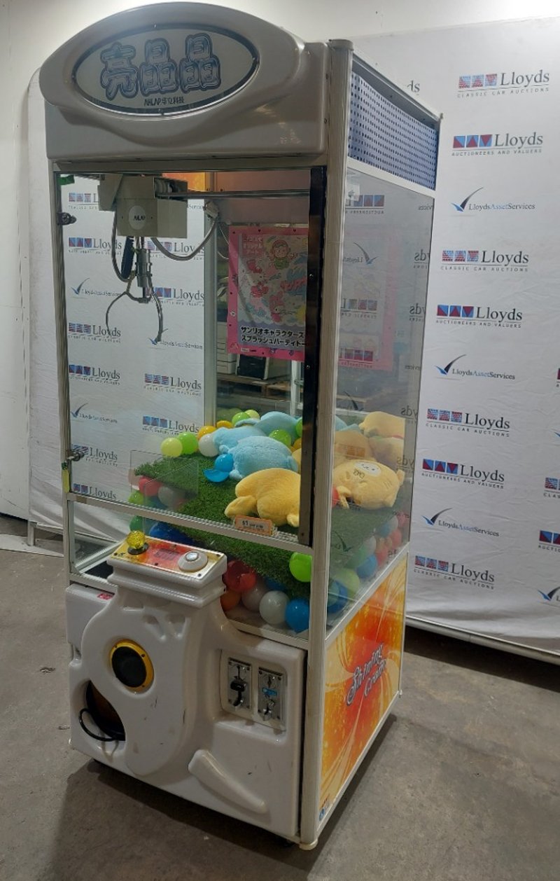 Arcade Claw Machine - Wahlap Shining Crane, single player, joystick controls, coin operated, mobile.Dims: 2000mm x 800mm x 850mmDOM: 2015Note: item is untested, with signs of wear, keys included.