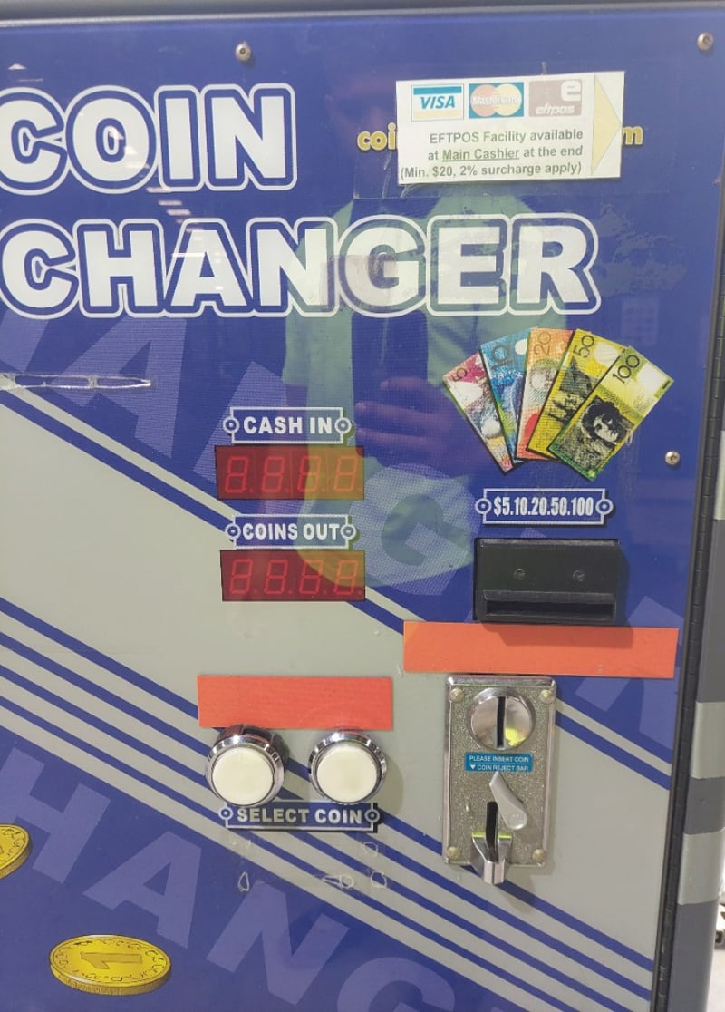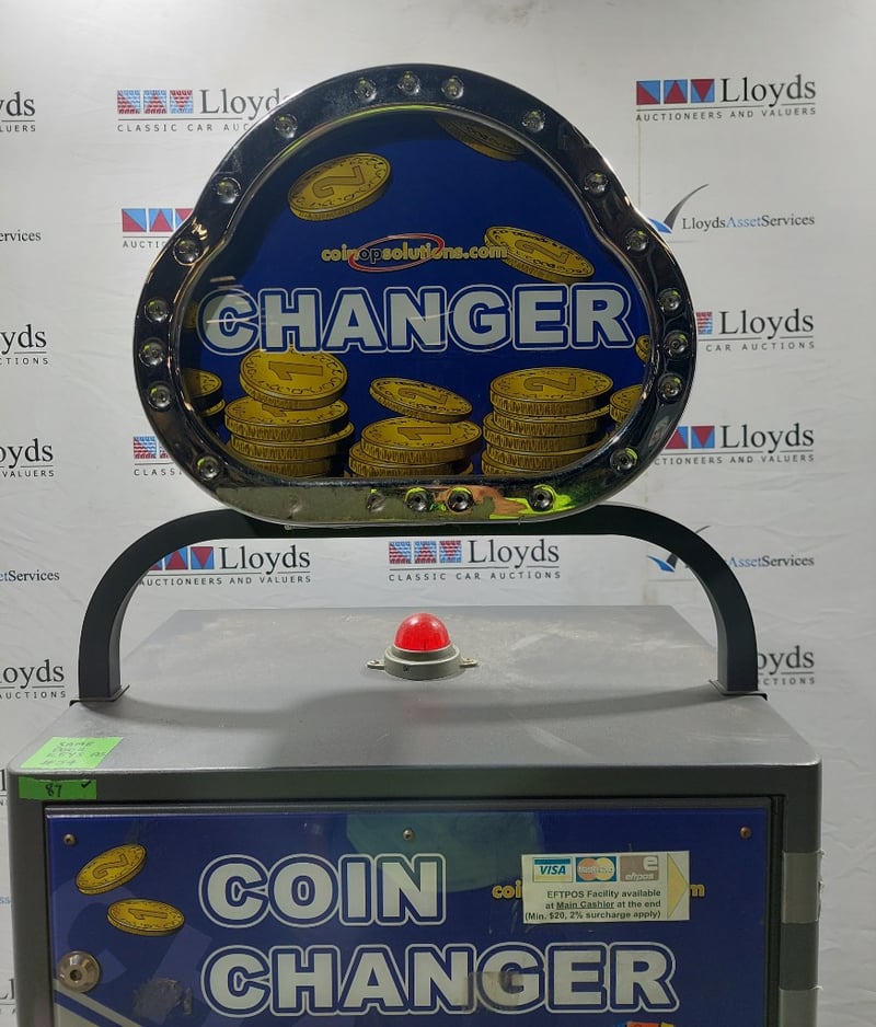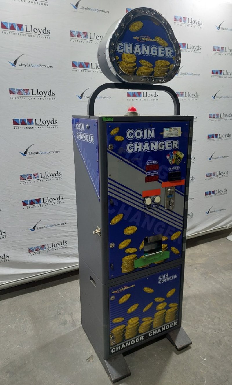 Change Machine - Paokai 918, banknote acceptor, sign over.S/N: 9607349Dims: 1450mm x 550mm x 570mmDOM: 2008Note: Item is untested, with signs of wear, keys included.
