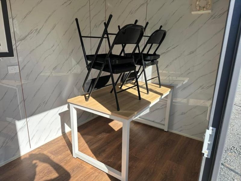 10FT x 7FT Portable OfficeFeatures:10ft Long x 7ft Wide office roomSteel frame Walls constructed of 50mm EPS foam core insulated panels Ceiling constructed of 40mm EPS foam core insulated panelsFront and side lifting pockets Screen guards Table with four chairs File cabinet 2 double glazed openable windows Entry lockable door Laminate over 16mm flooringInterior light. 1 x Table 1400mm x 800mm4 x Foldable Chairs2 x Plugs1 x CabinetFuse Board1 x Extraction Fan1 x LightMeasurements:Width 2150mmLength 3000mmHeight 2420mmRSE Code: 0007Location: Carole Park QLDLocation: Carole Park, QLD Contact: Gage on 0458 732 549 or alternatively [email protected]