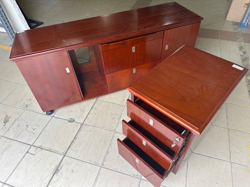 Office furniture Large cabinet L 162 x D 49 x H 67 (1x wheel missing)Filing cabinet W46 x D64 x H66 Sold as lot