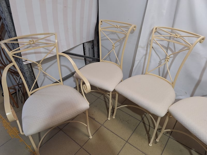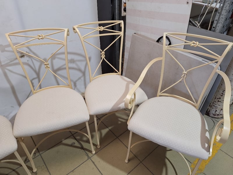 Set Of 6 Dining Chairs With Cushion, Metal Style, Natural FinishDimensions H:95cm W:52cm D:51cmSOLD AS LOT
