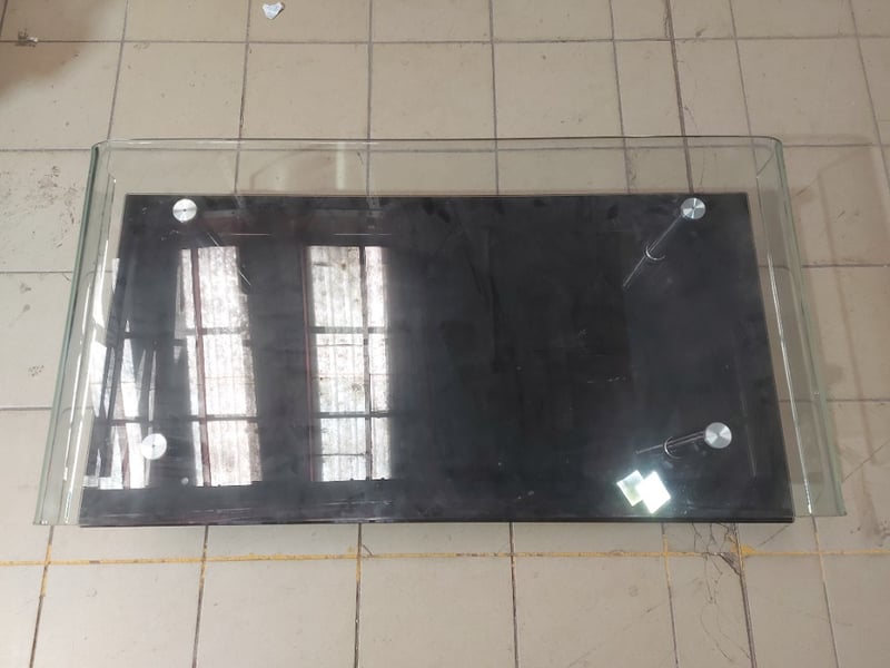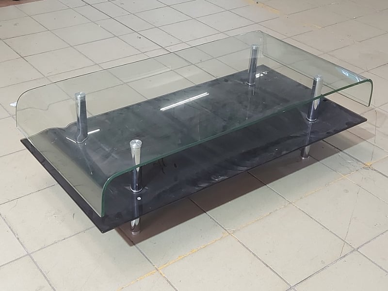 Coffee Table, Glass Top, Black Finish Shelf, Metal FramedDimensions: H 40cm W 127cm D 65cm