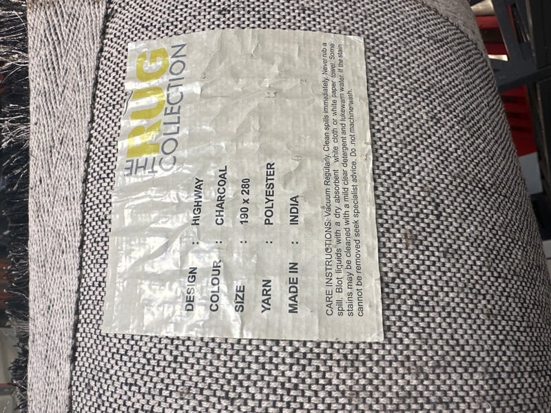 Rug 190 x 280 cmDesign: HighwayColour: Charcoal Yarn: Polyester Made in India