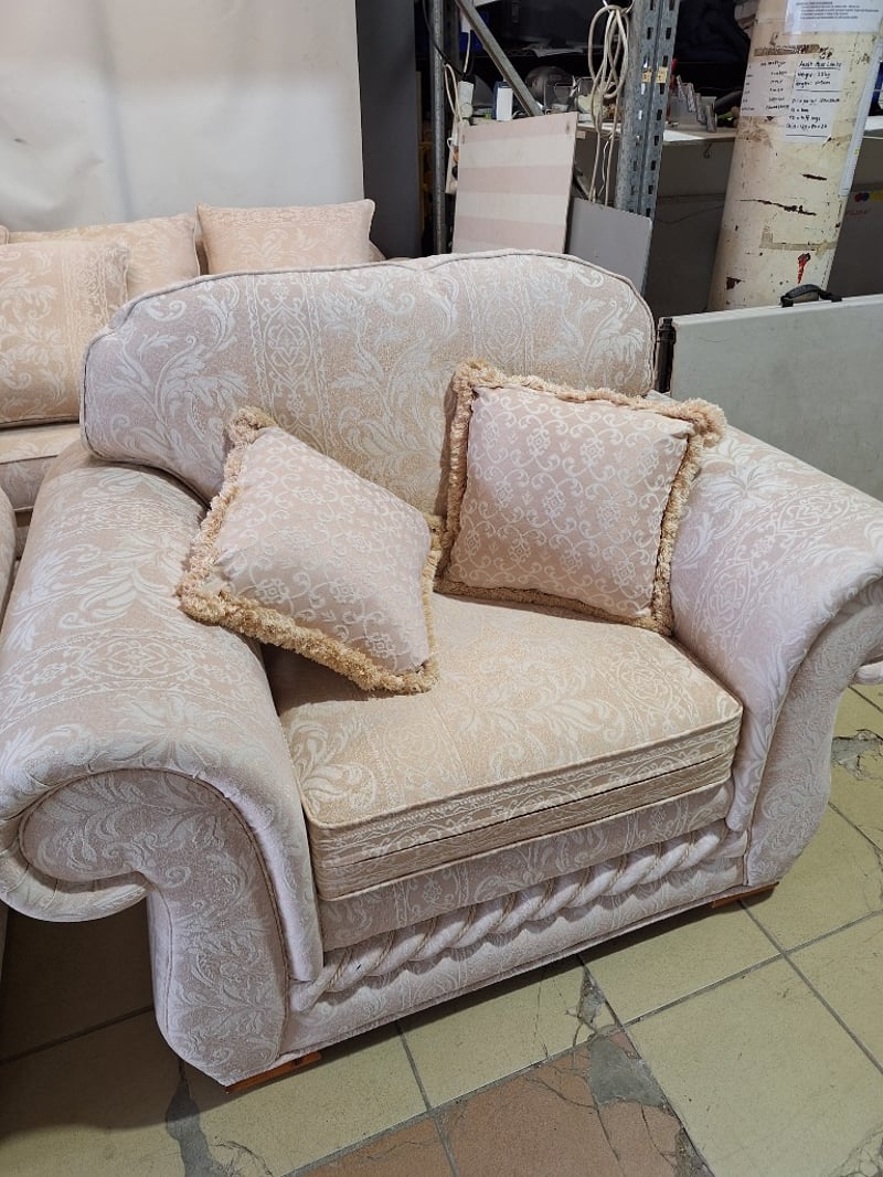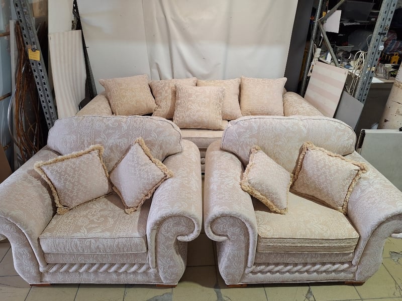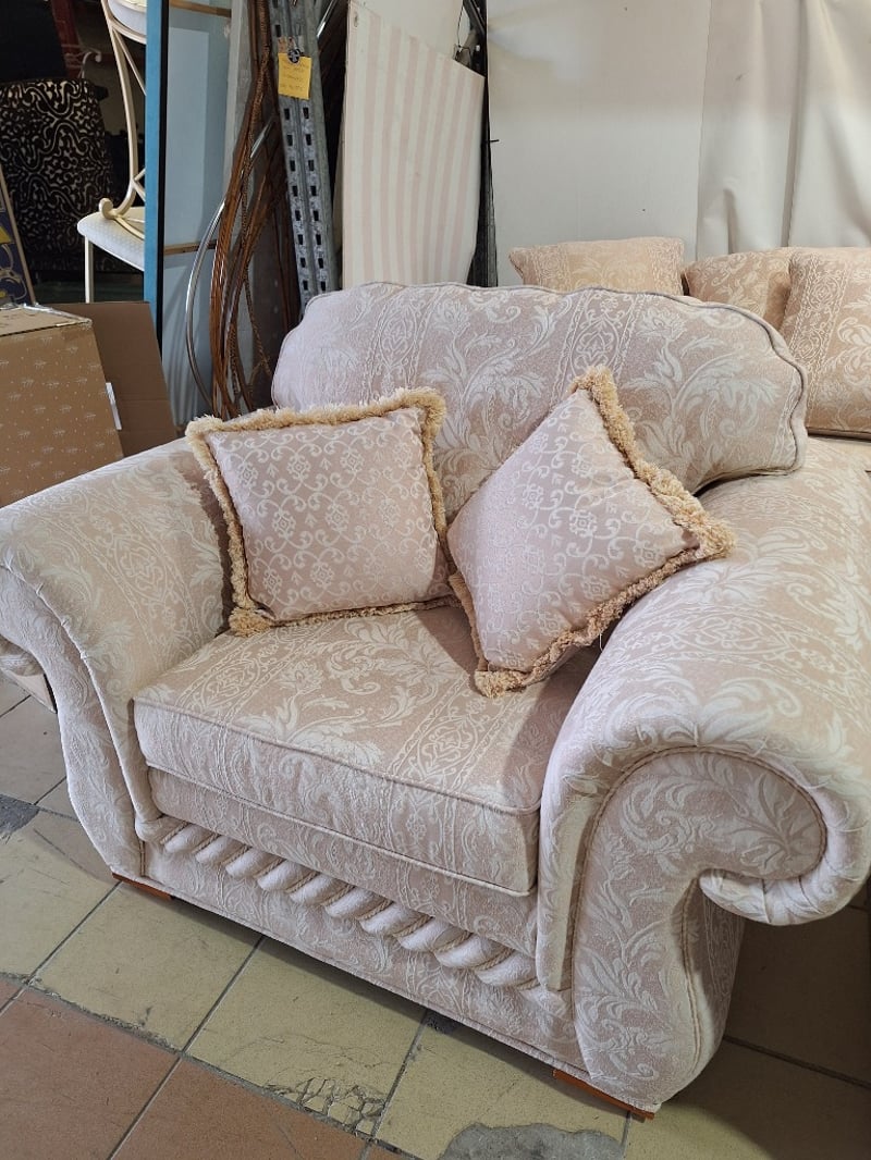 5 Seater Sofa With Cushions, Fabric Style, Cream FinishDimensions Single Seater H:80cm W:130cm D:93cmDimensions 3 Seater H:80cm W:250cm D:93cmSOLD AS LOT