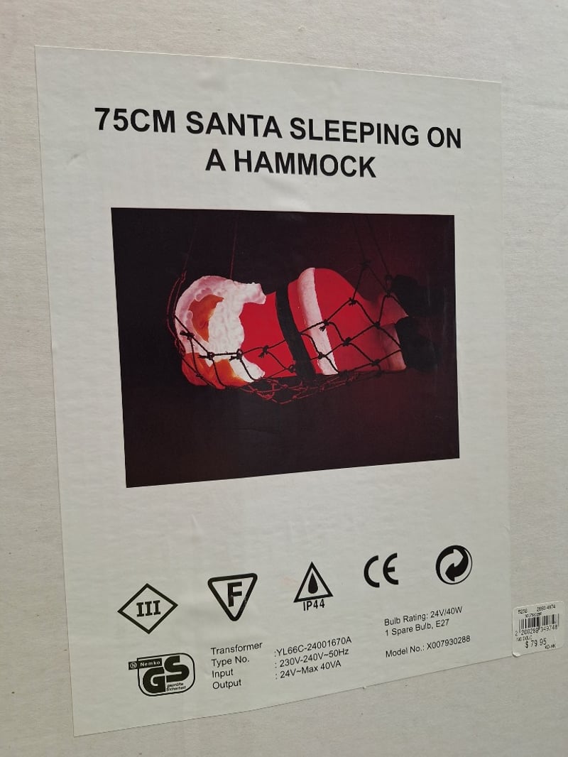 Christmas Decoration 75cm Santa Sleeping On A Hammock