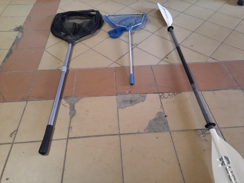 2x fishing nets, Solution canoe paddleSOLD AS LOT