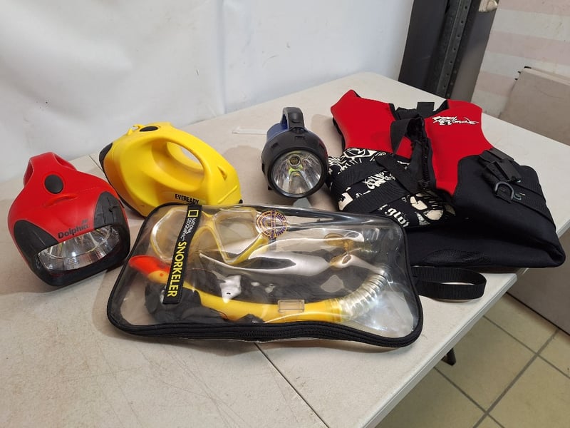 Assorted Sport LotIncludes Life Jackets, Torches & SnorkelerSOLD AS LOT