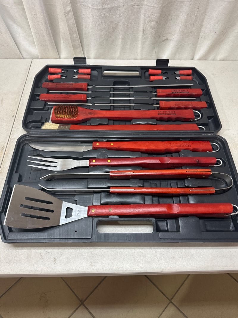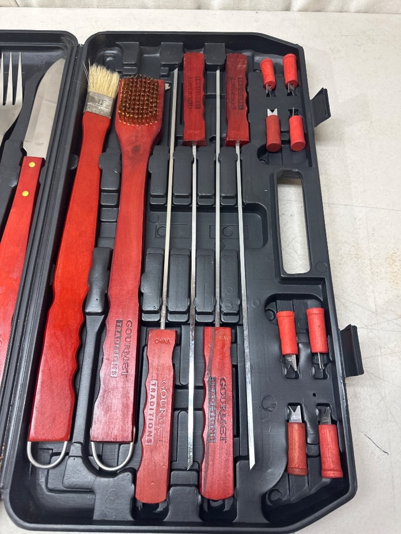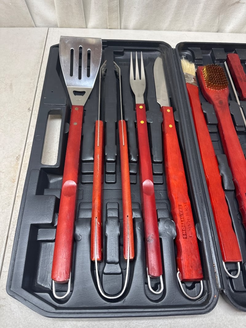 Coleman’s Camping bbq and Gourmet Traditions BBQ utensils setColeman’s BBQ guide series 5428-454TSold as lot