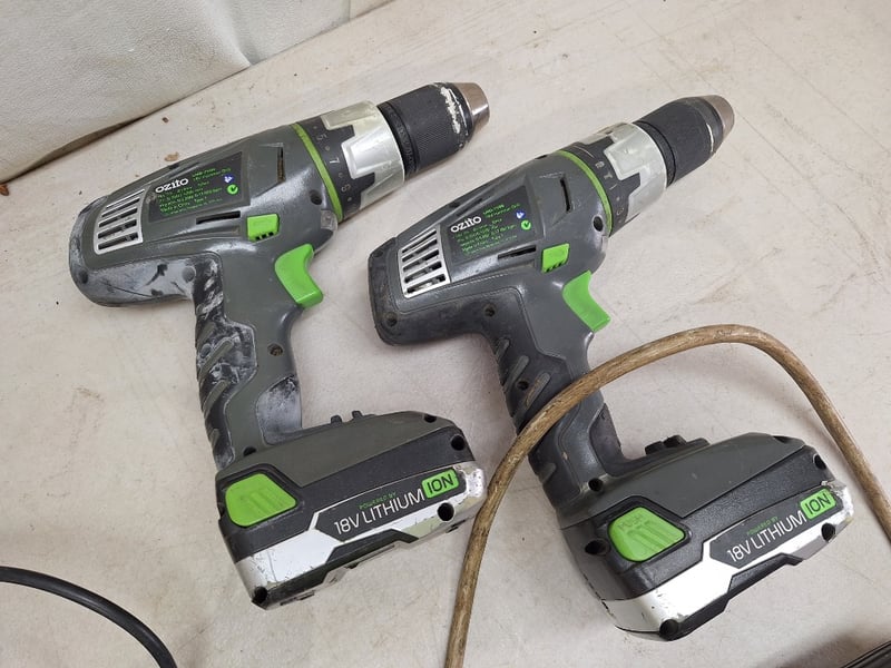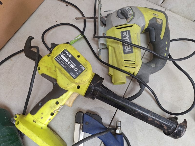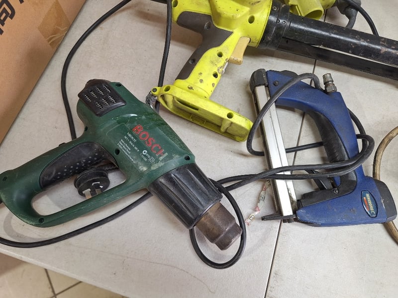 Assorted Tool LotIncludes Ryobi cordless caulk gun, Bosch heat gun, Several cordless drills/drivers, Stapler & MoreSOLD AS LOT