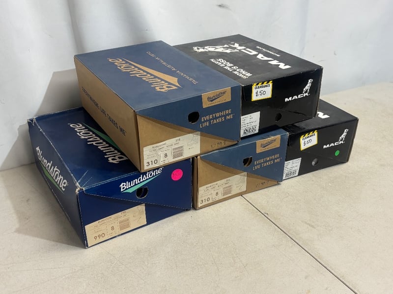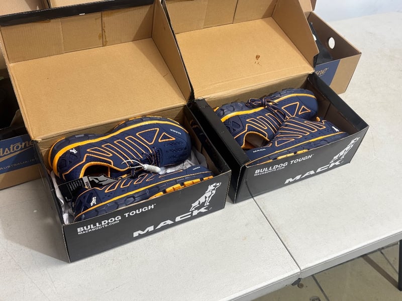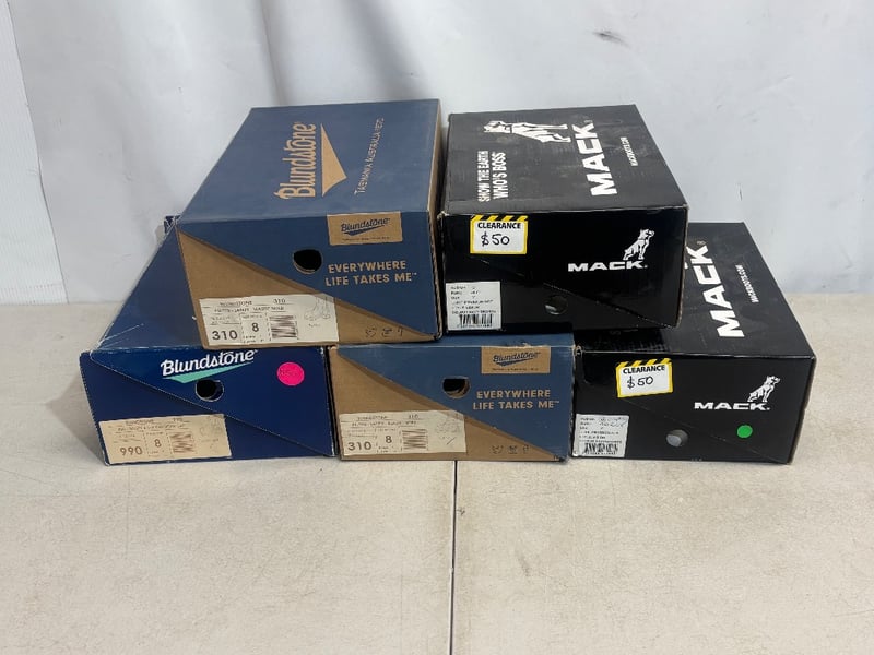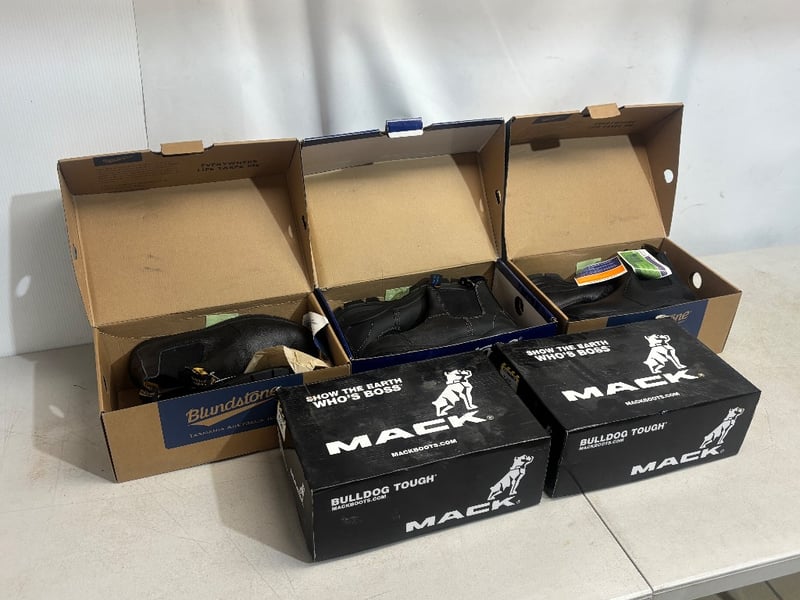 Lot of Work Boots and Shoes, Brands: Mack and Blundstone, Various Styles, Boots and Sneaker style, Sold as lot