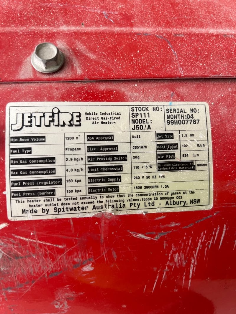 Jet fire, J50/ A, gas-fired air heater