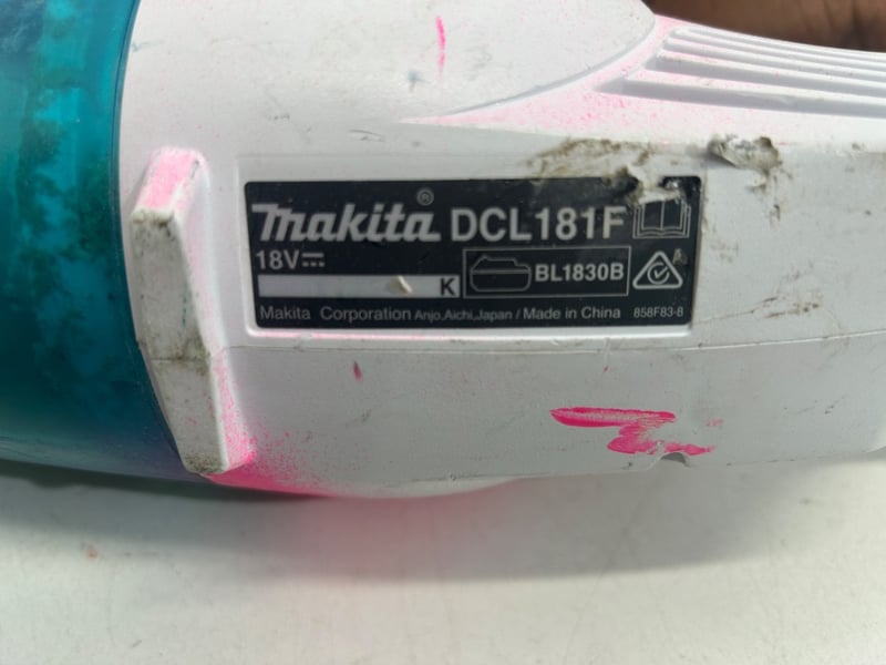 Stick Vacuum, Makita, Model DCL181F 18V, Includes some attachment heads.