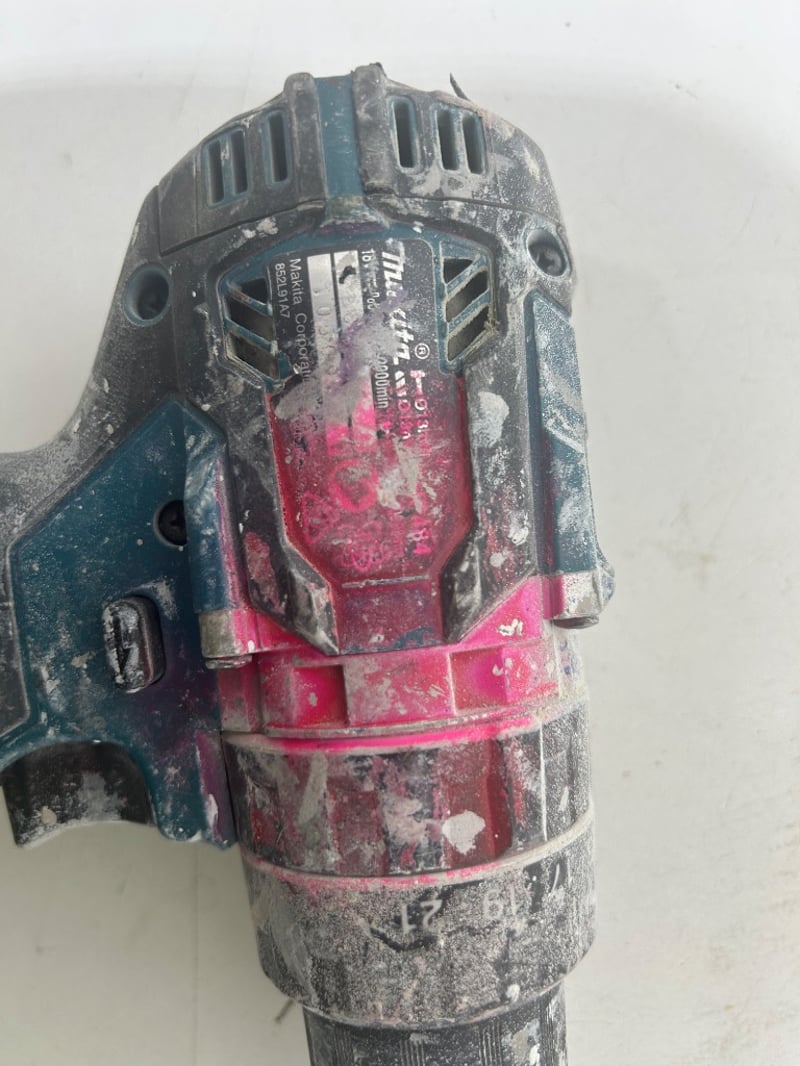 Makita 18V cordless drill driver (model BDF453Z) fitted with a paint/mud mixing paddle attachment. Item is in working condition. - Skin Only