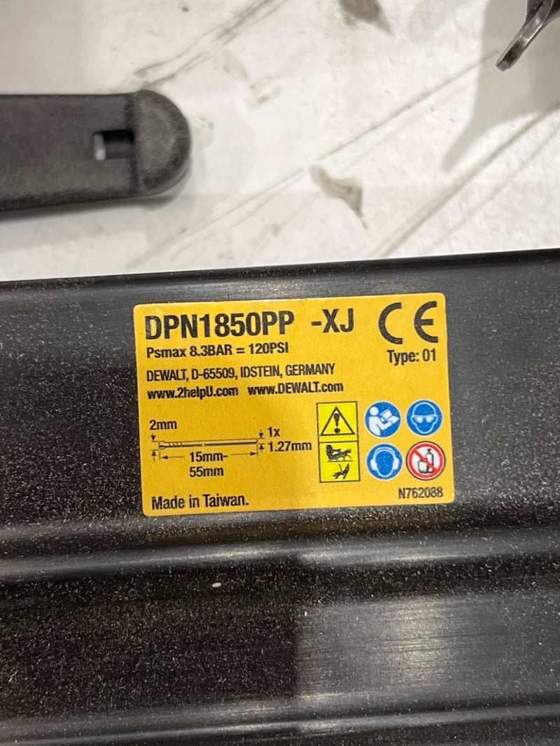 DeWALT, DPN1850PP, air compressed nail gun, Psmax; 8.3BAR=120PSI
