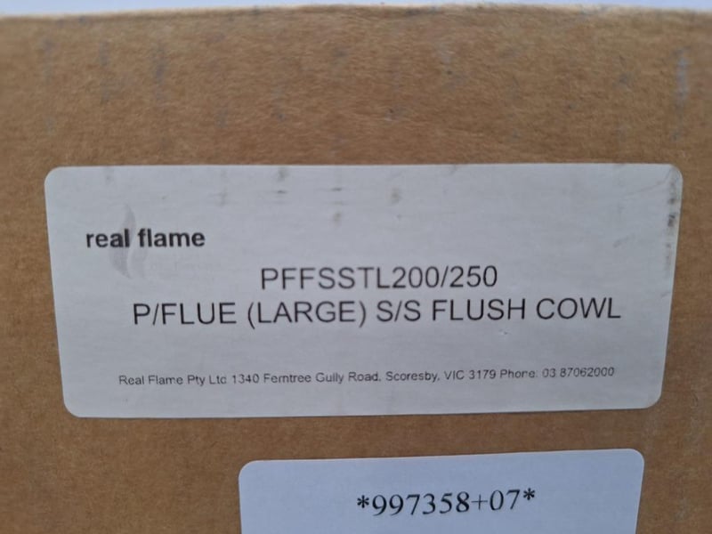 Real Flame, Stainless Flush Cowl, P/Flue, Model PFFSSTL200/250, New In Box