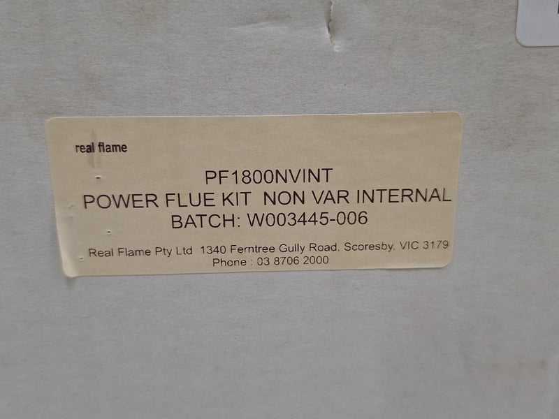 Real Flame PTY LTD, Power Flue Kit, Non Var Internal, Batch W0003445-006