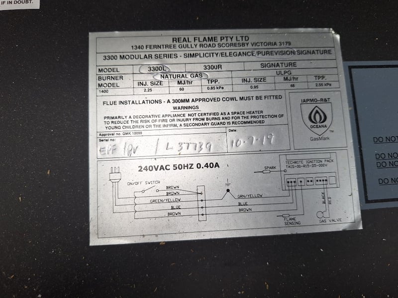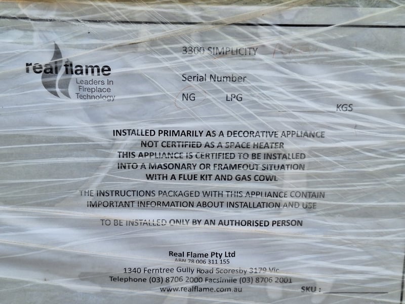 Real Flame, Natural Gas, Decorative Fire Place, Appliance Is Certified To Be Installed Into Masonary Or A Frameout With A Flue Kit And Gas Cowl, Approximately 1135mm (H) x 3400mm (W) x 380mm (D)
