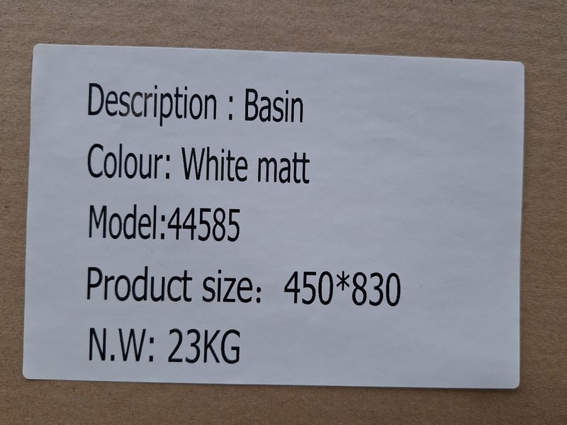 Moda, Matt White, Basin, Model 44585, Product Size 830mm (H) x 450mm Diameter, New In Box