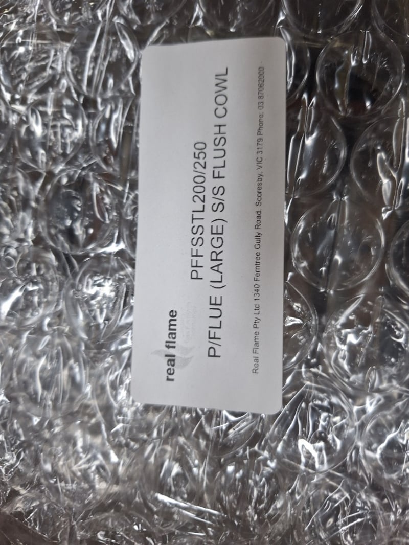 Real Flame, Stainless Flush Cowl, P/Flue, Model PFFSSTL200/250, New In Box