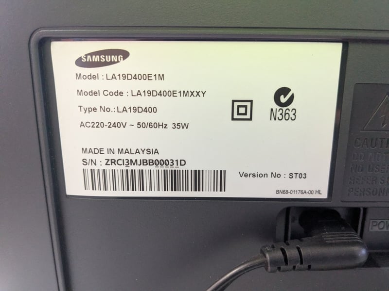 LCD TV, Samsung LCD TV 19, Model LA19D400E1M