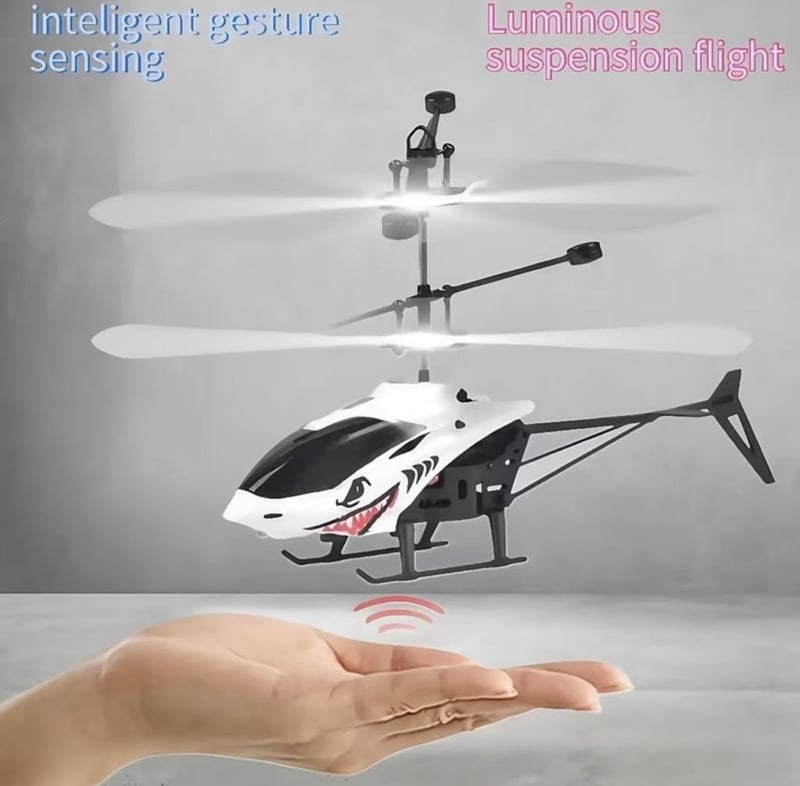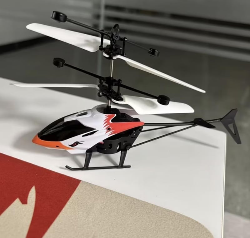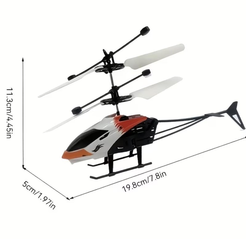 Orange Falcon Sensing Helicopter, Glowing Flight, And Gesture-Controlled Hovering, Rechargeable