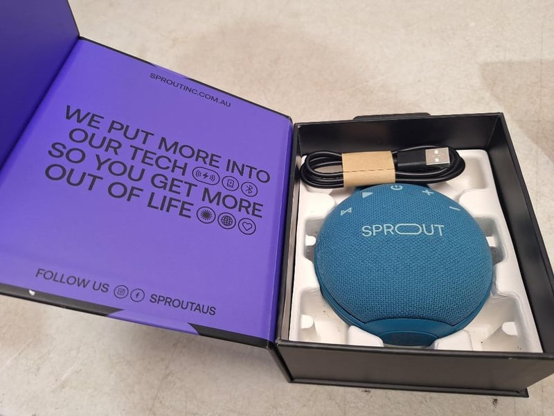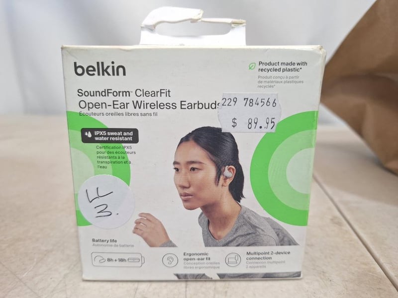 1 x Belkin Open-Ear Wireless Earbuds, Brand new in box, RRP $90.00, 1 x Sprout Bluetooth Speaker in box.