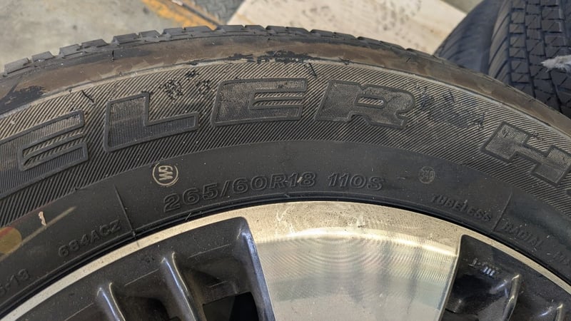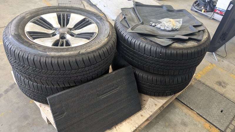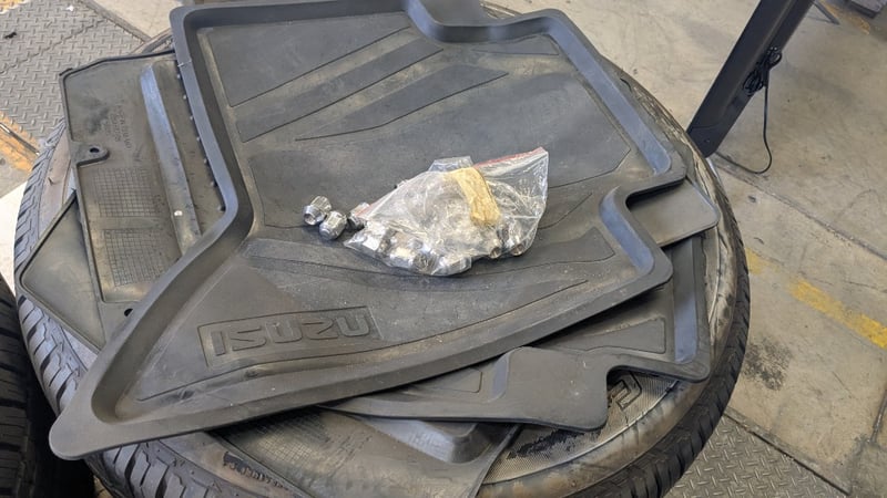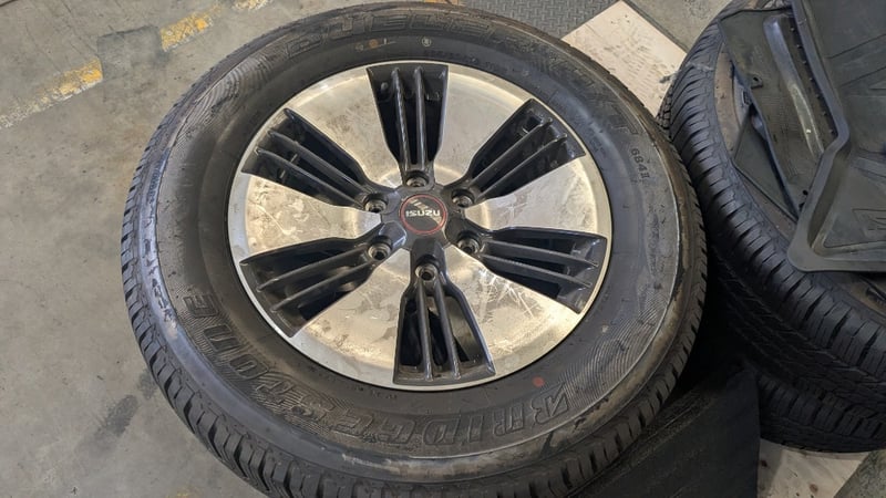 Assorted Car Parts, Includes Bridgestone Dueler H/T 265/60r18 Tyres, Isuzu Floor Mats and Wheel Nut, Quantity to Pallet SOLD AS LOT NOTE: INSPECTIONS HIGHLY RECOMMENDED
