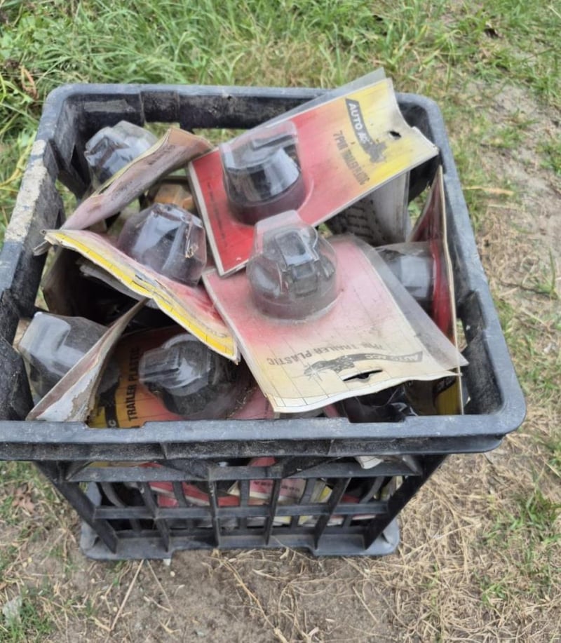 crate of auto accessories 7 pin trailer plastic sold as lot
