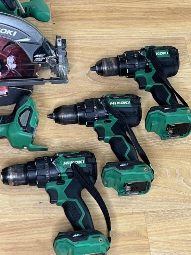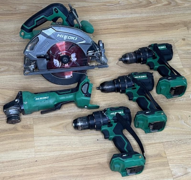 Cordless Hikoki 36V tools. 1 x C 3607DB circular saw, 3 x DV 36DC hammer drills, 1 x G 3613DB angle grinder. Skins only, no batteries. Condition: Not working, untested, for parts or repair.