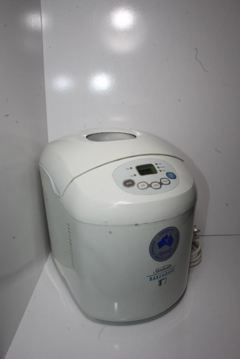Sunbeam Bakehouse Bread MakerUsed and working. Powers on and buttons respond. Cosmetic wear to exterior and visible use marks inside baking chamber (see photos). Bread pan included. No box or manuals.