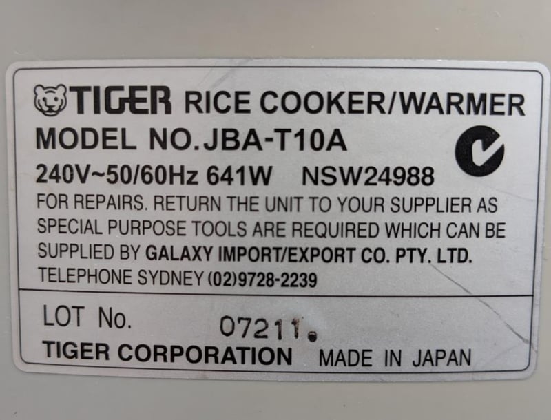 TIGER Brand (made in Japan) Rice cooker warmer model JBA-T10A 641 watts