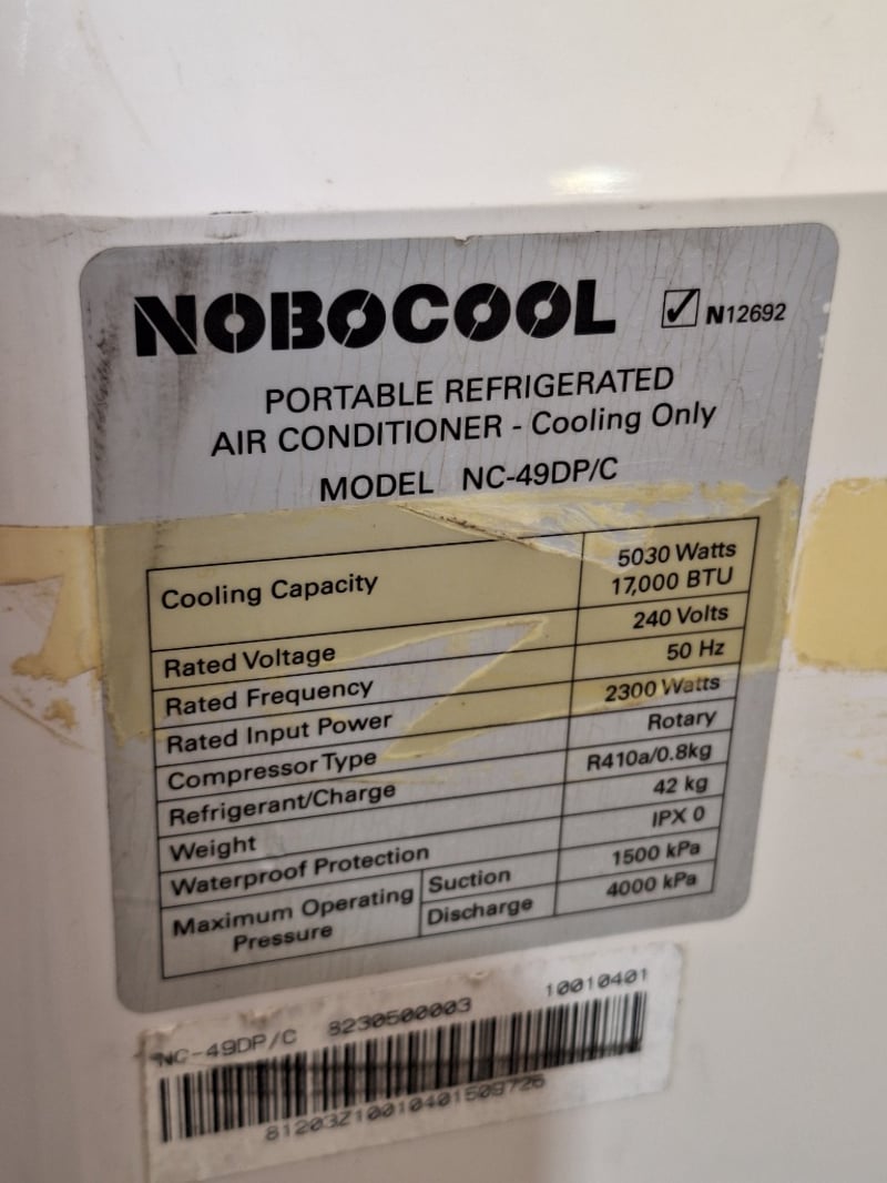 Nobocool Portable Refrigerated Air Conditioner, Model NC-49DP/C