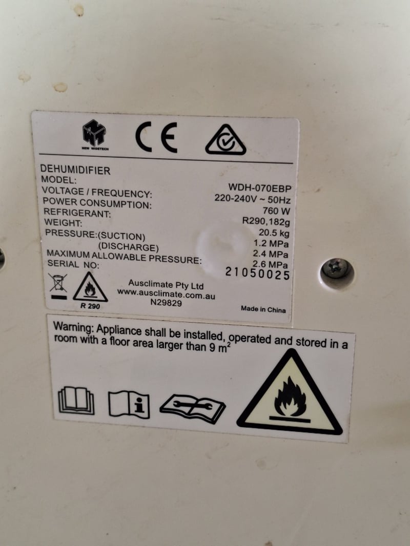Ausclimate NWT Supreme All Season 50L Dehumidifier, model WDH-070EBP