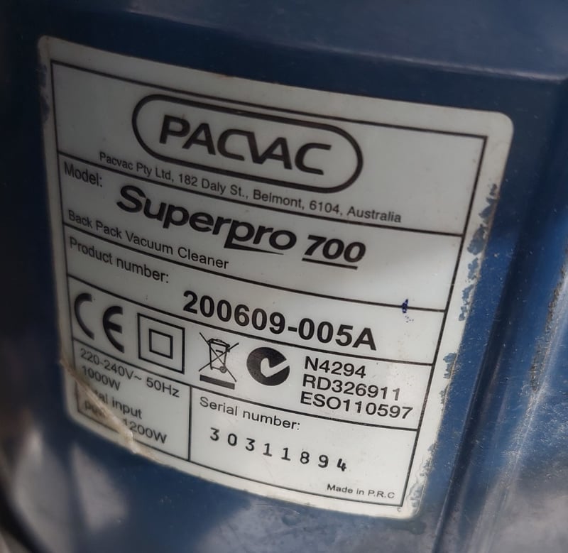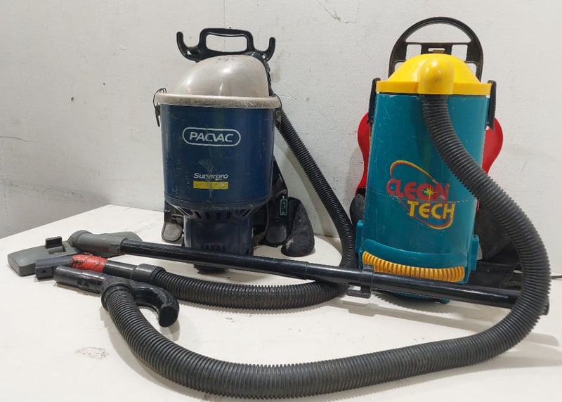 Commercial back pack vacuum cleaners Pacvac Model:superpro 700, Serial no: 30311894, Clean tech,Serial no: 325256. Sold as a lot. Notes: items untested and signs of wear and may have missing pieces.