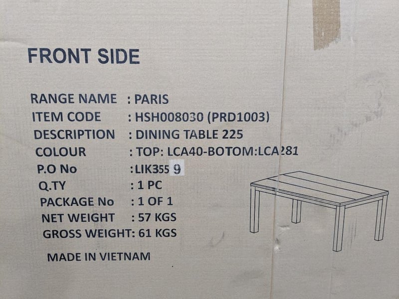HSH008030, Dining table top 225 Colour: White and brown wood finish Note: table top does not come with legs.