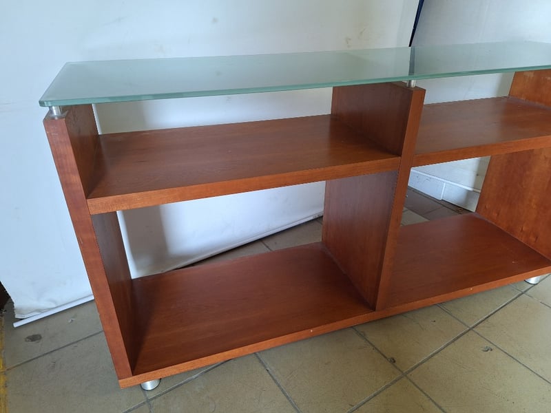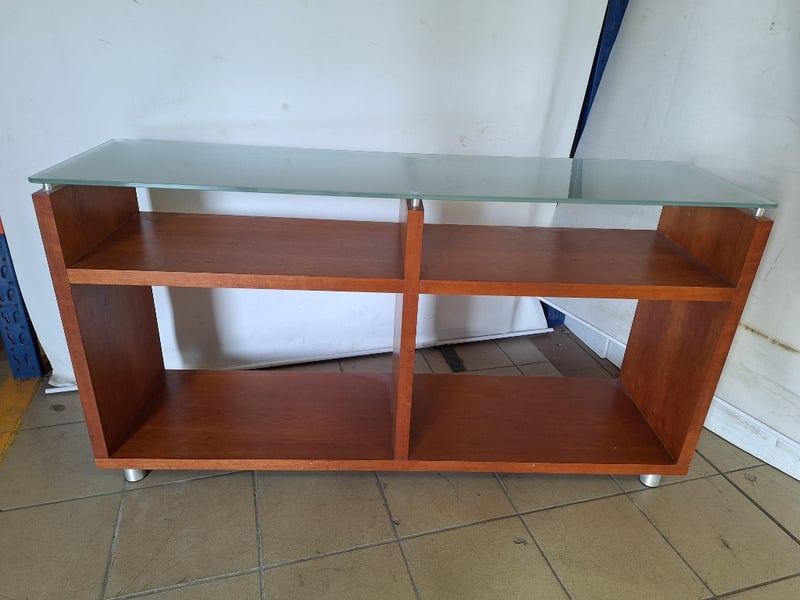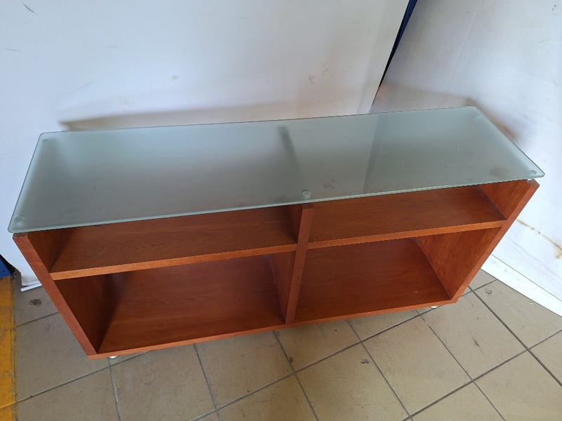 Entertainment Unit With Glass Top, Timber Style, Natural Finish
