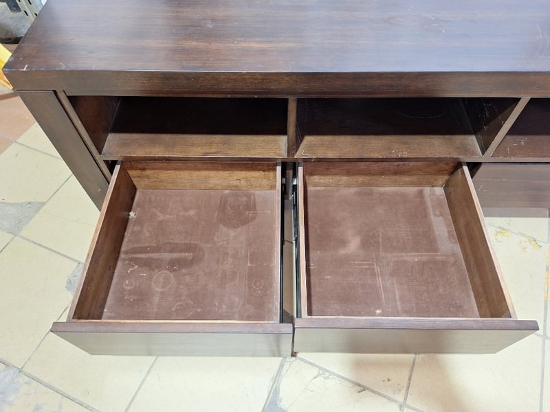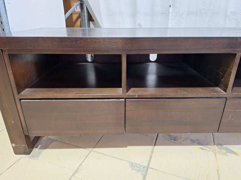 Entertainment Unit With Drawers, Timber Style, Brown Finish